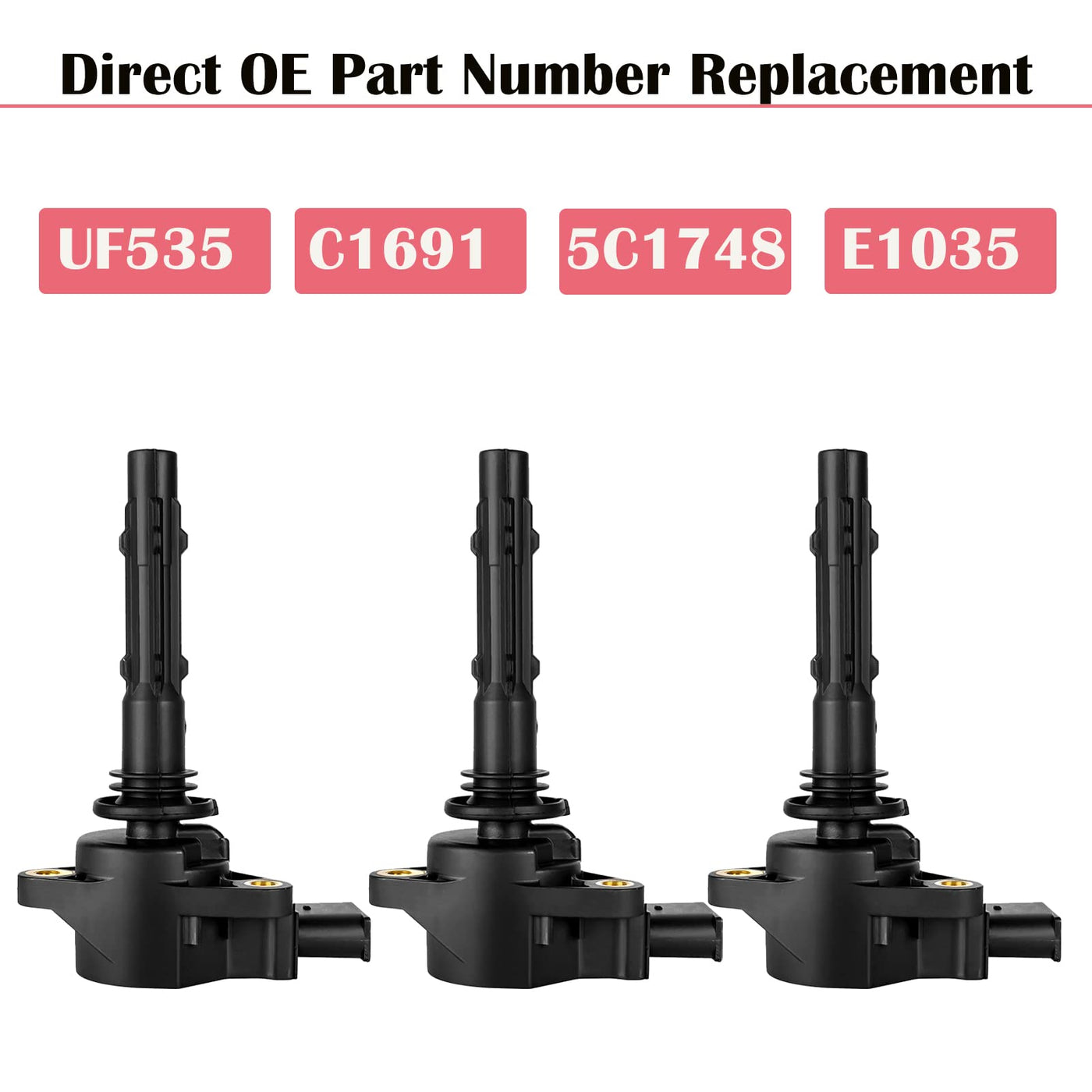 Q: How do I know if these ignition coils will fit my vehicle?A: To ensure the ignition coils fit your vehicle, please check your vehicle's Year, Make, Model, and Engine specifications. Additionally, confirm the part number UF535 and other compatible OEM numbers listed in the product details to match your vehicle correctly.