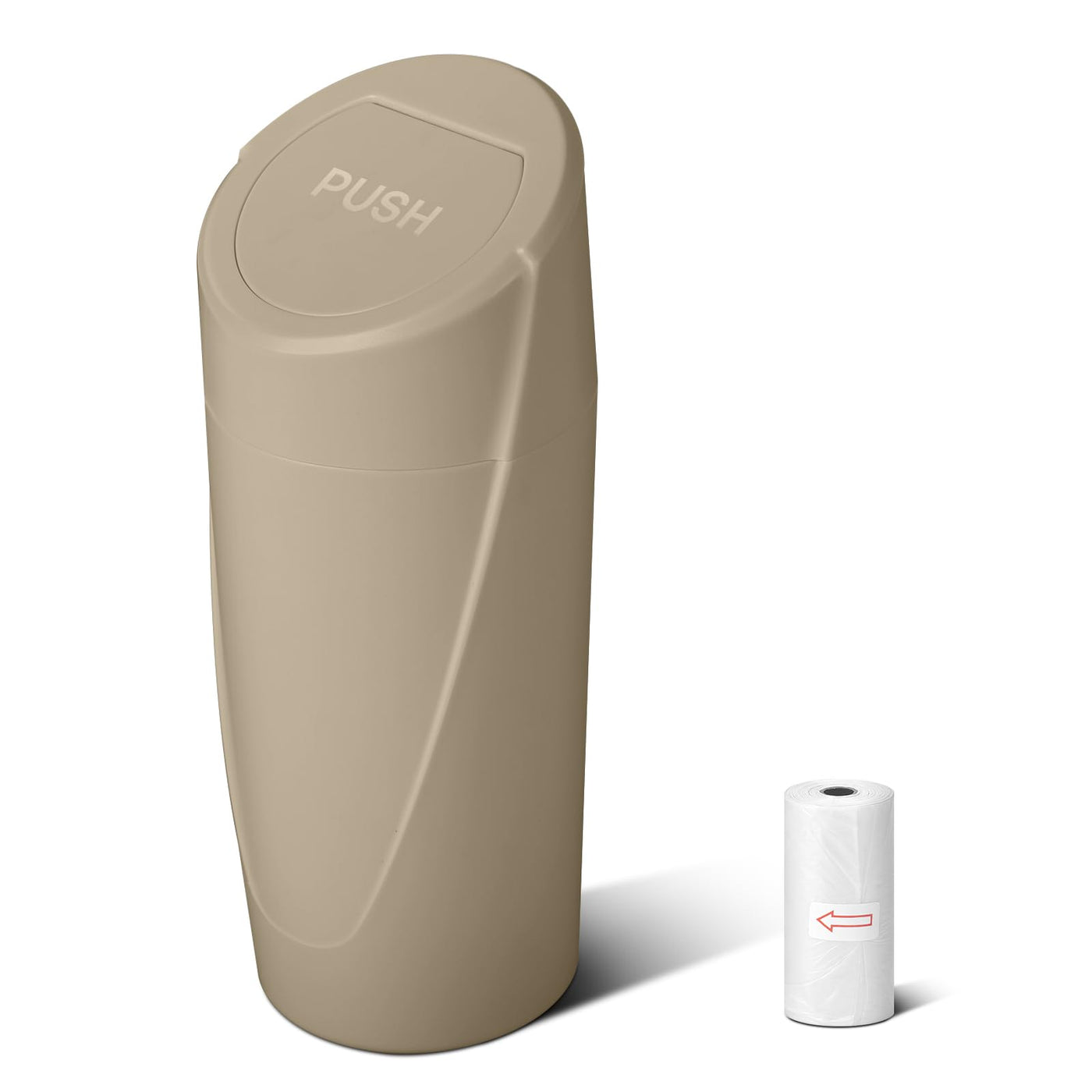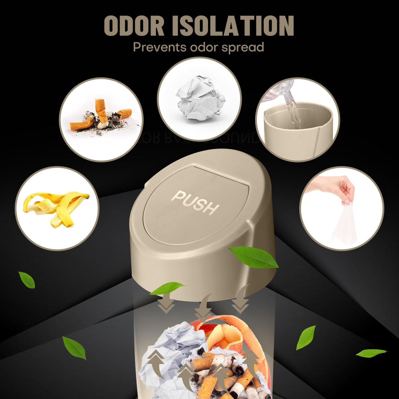 Sglrt Car Trash Can Bin With Lid - Car Garbage Can Cup Holder - Beige Mini Leakproof Vehicle Trash Garbage Can Bin With 20Pcs Tr
