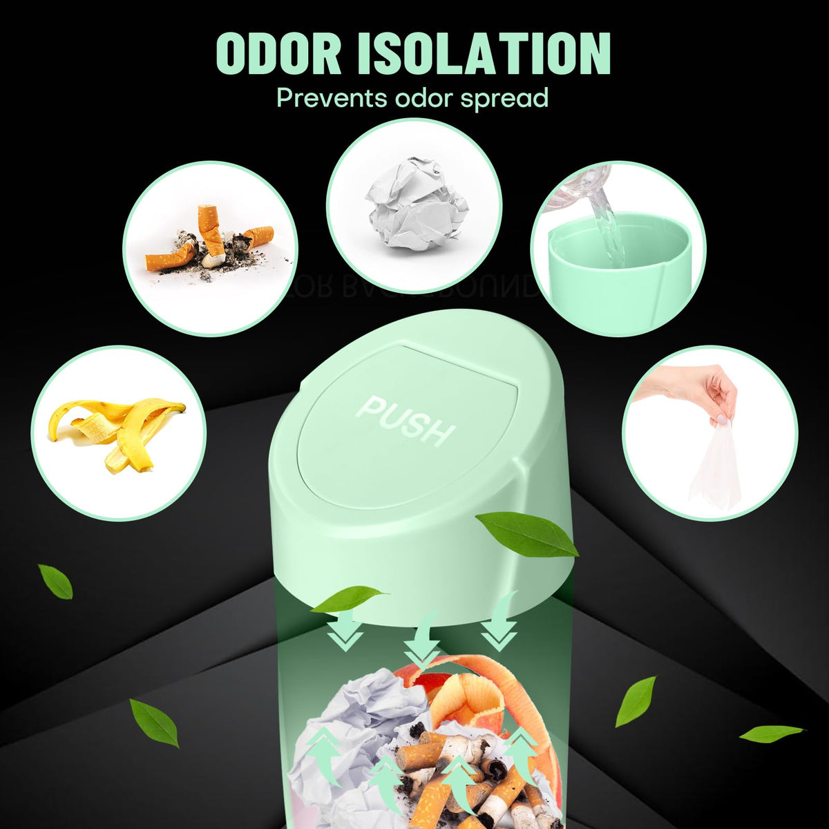 Sglrt Car Trash Can Bin With Lid - Car Garbage Can Cup Holder - Green Mini Leakproof Vehicle Trash Garbage Can Bin With 20Pcs Tr