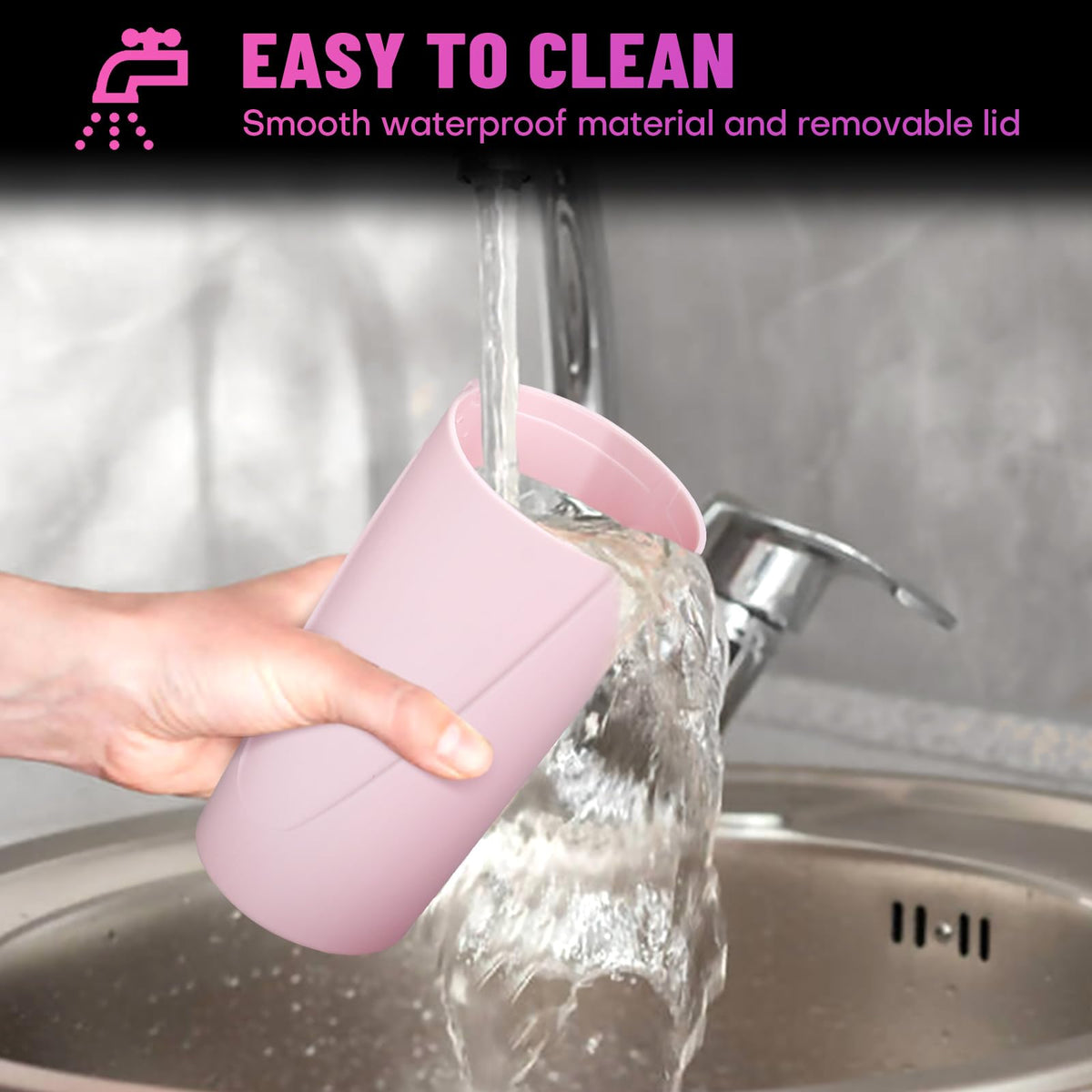 Q: How do I clean the SGLRT Pink Mini Trash Bin?A: Cleaning is simple: just remove the lid, rinse both the lid and the body with water, and wipe them dry to keep your trash can looking fresh and clean.