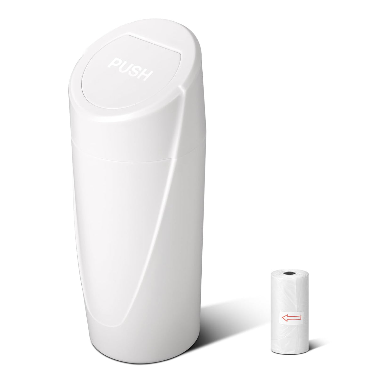 Sglrt Car Trash Can Bin With Lid - Car Garbage Can Cup Holder - White Mini Leakproof Vehicle Trash Garbage Can Bin With 20Pcs Tr