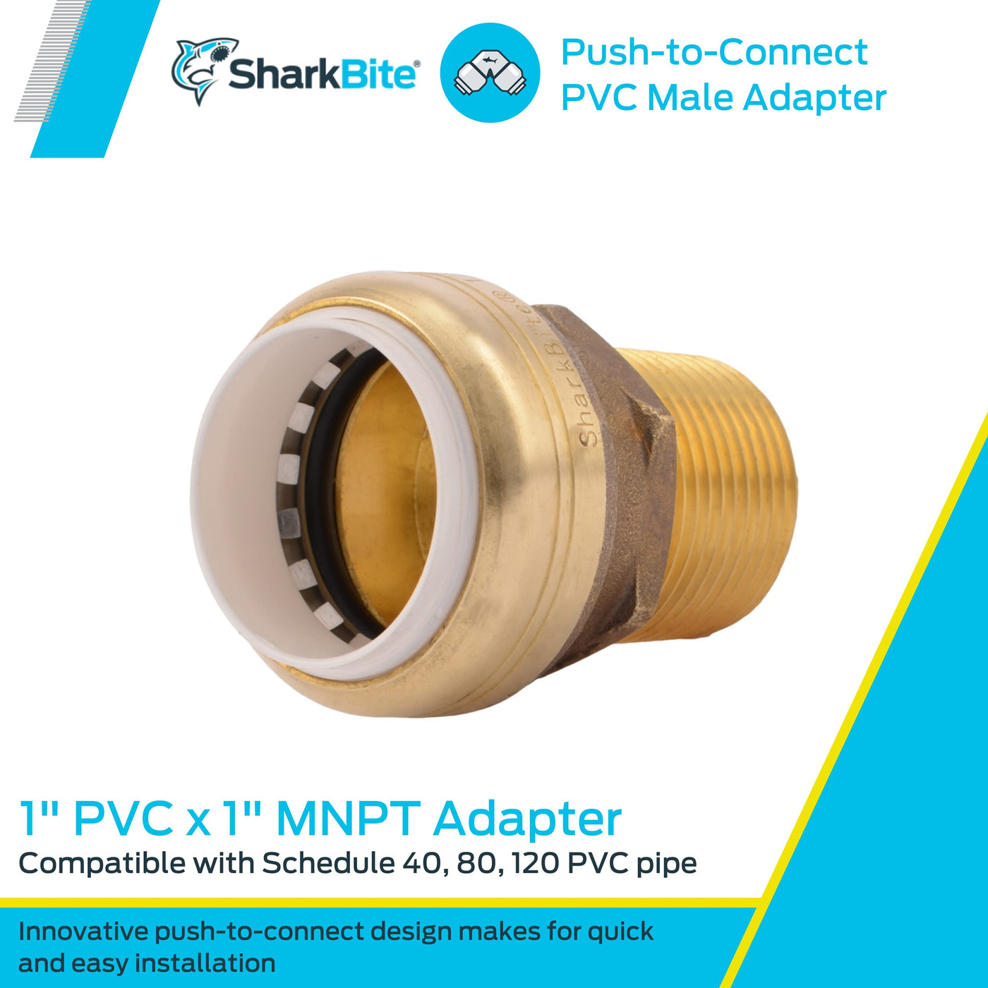 SharkBite 1 Inch PVC x 1 Inch MNPT Adapter, Push to Connect Brass Plumbing Fitting, PEX Pipe, Copper, CPVC, PE-RT, HDPE, UIP140A