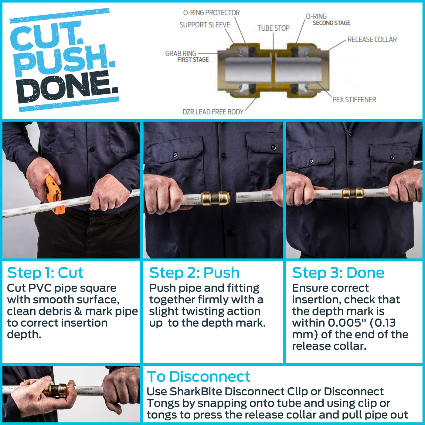 Q: How easy is it to install the SharkBite adapter?A: The SharkBite adapter features innovative push-to-connect technology that allows for quick and easy installation without the need for additional tools, glue, or soldering, making it ideal for both professionals and DIYers.