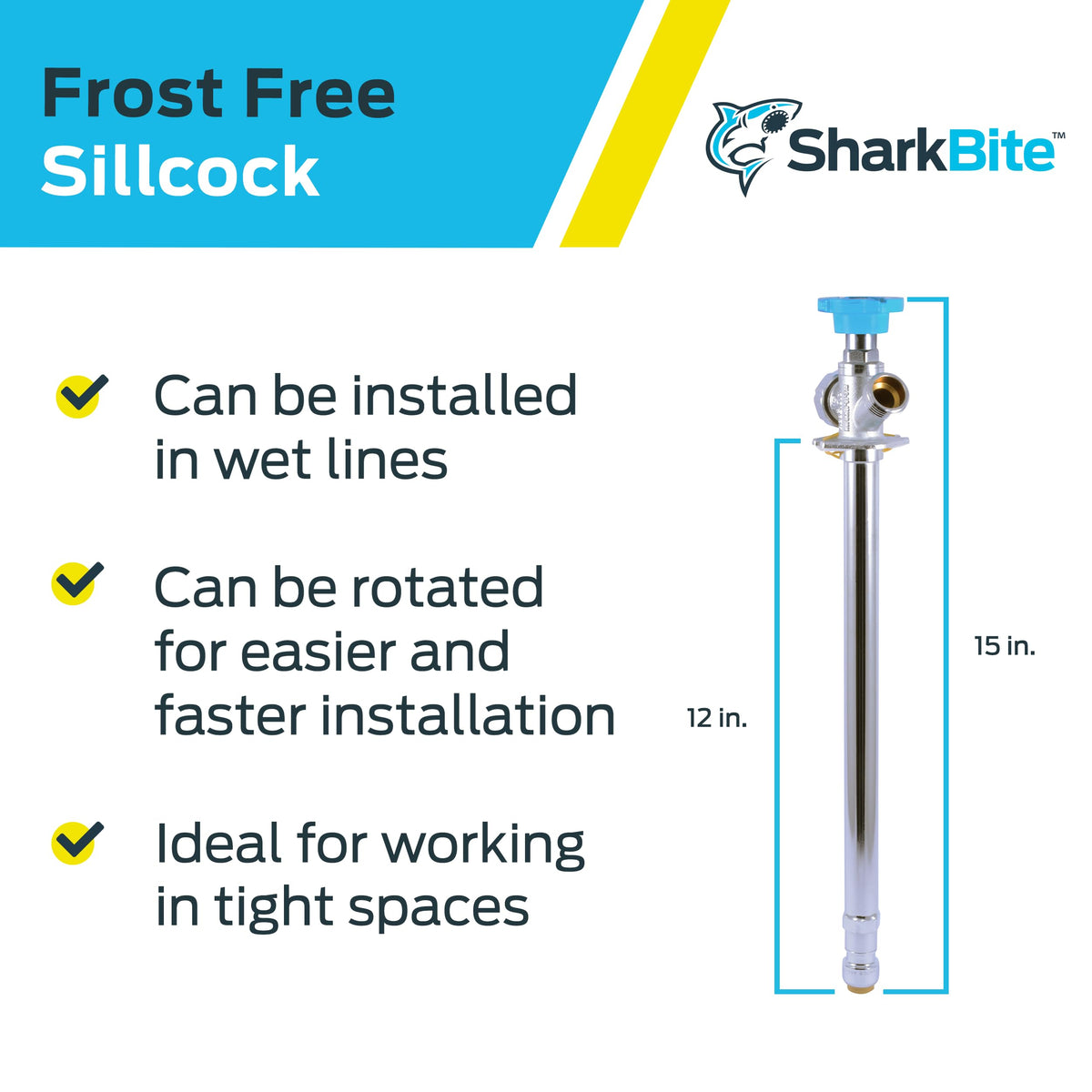 SharkBite 12 Inch Frost Free Sillcock, 1/2 x 3/4 Inch MHT, Push to Connect Brass Plumbing Fitting, PEX Pipe, Copper, CPVC, PE-RT, HDPE, 24636LF