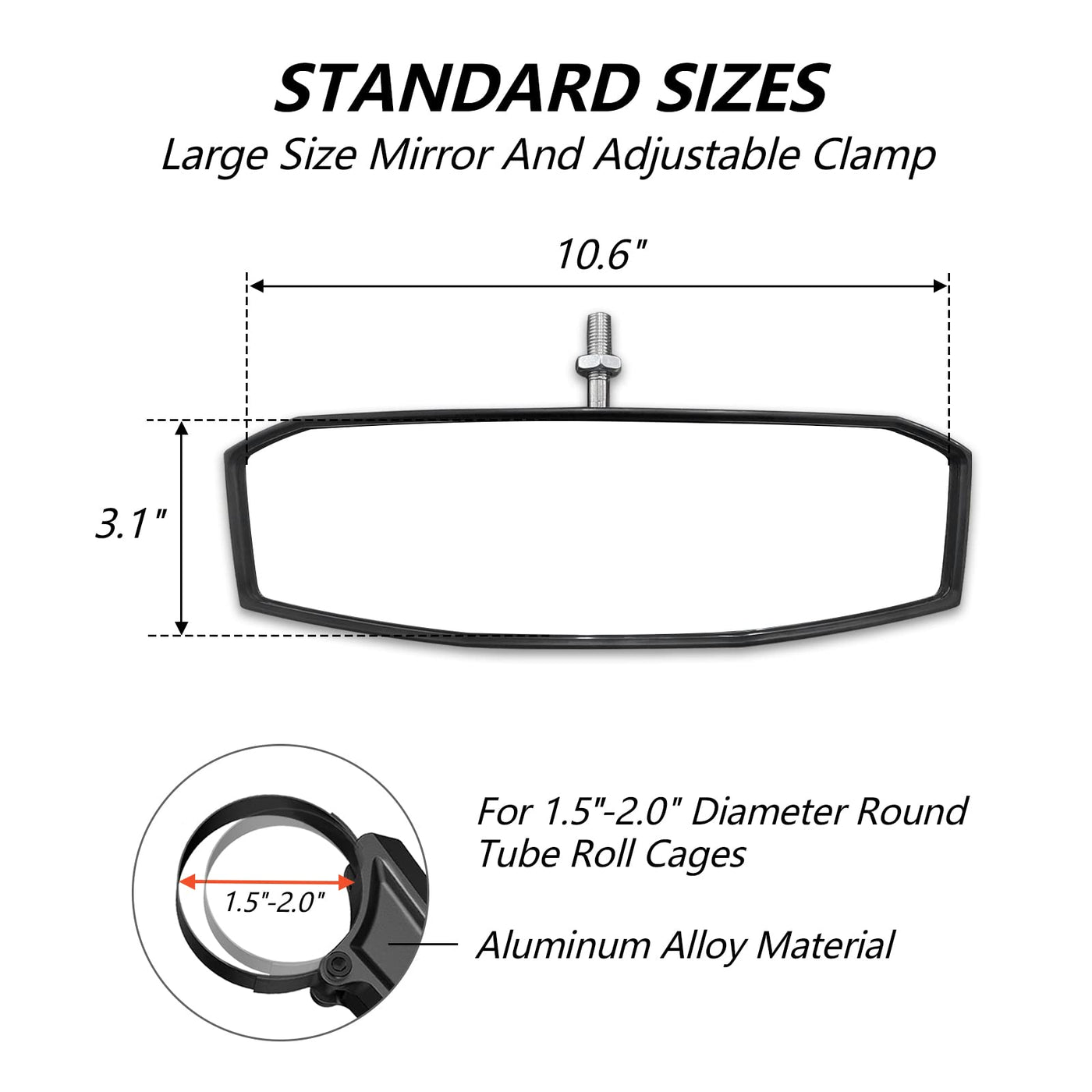 Wider Applicability: This UTV mirror is compatible with a full range of popular models, including Polaris RZR, Can-Am Commander, Maverick X3, Kawasaki Mule, Kawasaki Teryx, Honda Pioneer, Talon, SXS, and Yamaha Rhino YXZ. Enjoy versatility and seamless integration with your UTV.