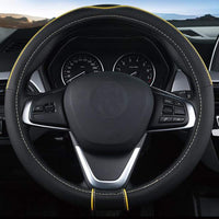 Shiawasena Auto Car Steering Wheel Cover, Universal 15 Inch Fit, Soft Leather, Breathable Anti Slip (Black&Yellow)