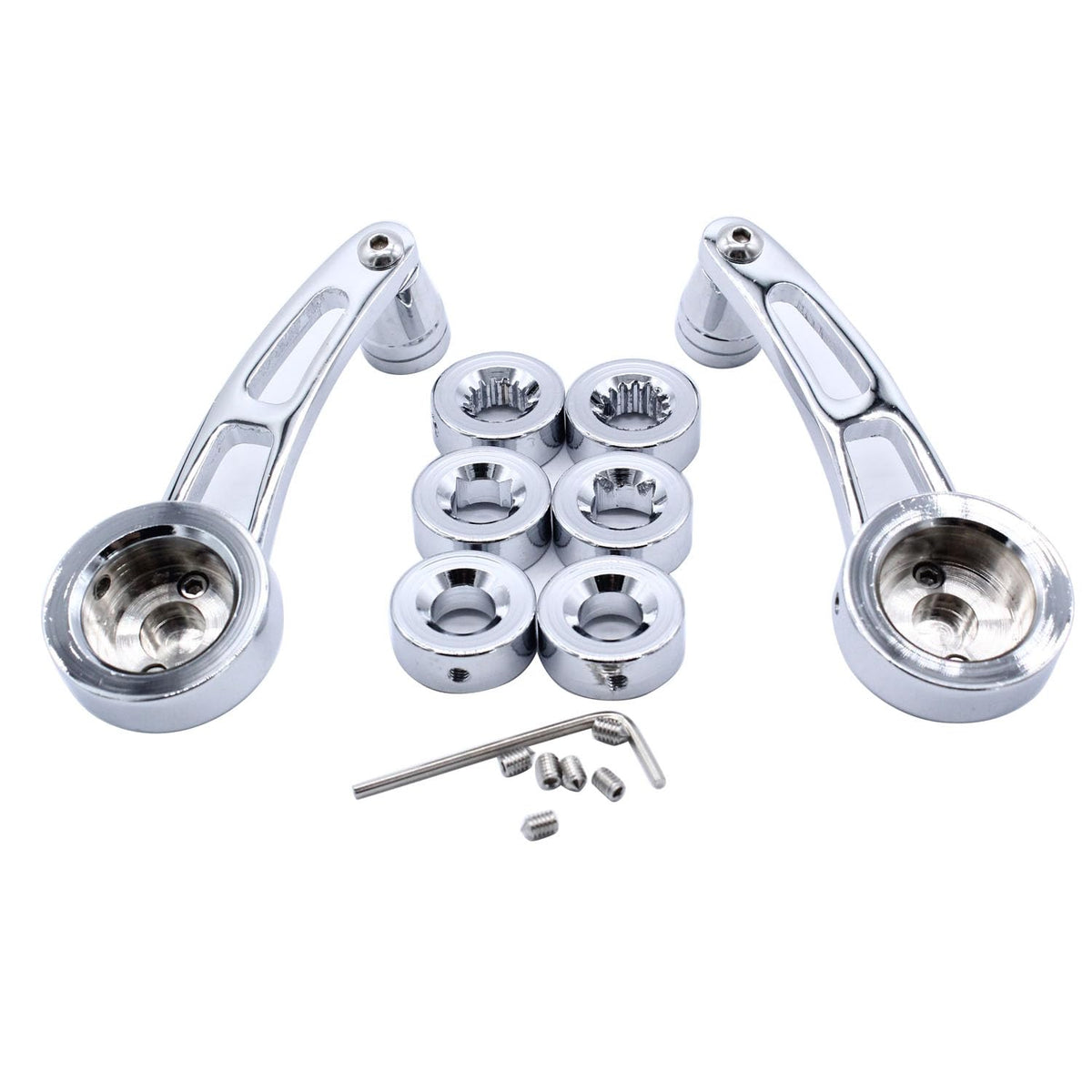 Specification: Condition:100% Brand New Colour:Silver Material: Aluminium Alloy Item type: Window Crank Handle Adapt Models: Suitable for classic vehicles such as for Chevrolet, for Ford, for Chrysler and most older models and using hawley carburetors Package List: 2 * Window Crank Handle 2 *square adapters 2 *splined adapters 2 *round adapters