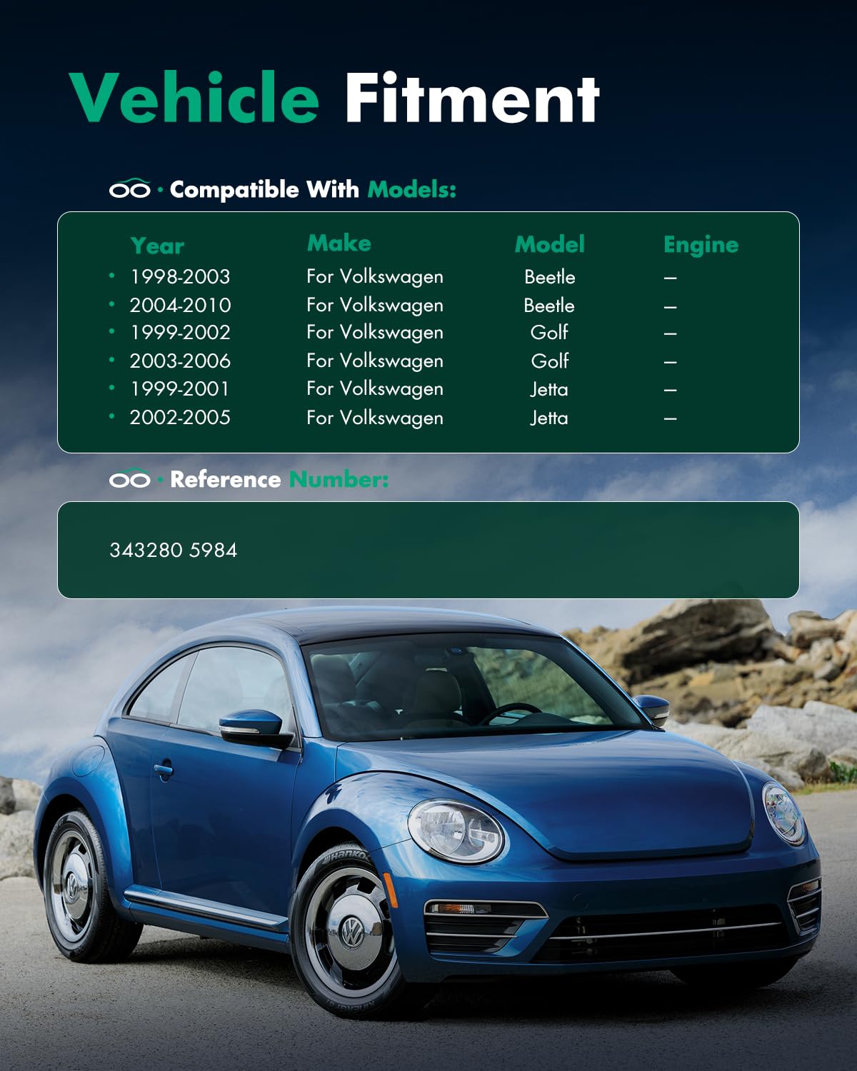 Features: 1.Easy to Install 2.Exact Fit 3.Improved of Road Noise, Vibration, and Harshness 4.Upgraded Sealing for Longer Life Compatibility Information: 1998-2010 Volkswagen Beetle 1999-2006 Volkswagen Golf 2005 Volkswagen Jetta To Production Date 04/2005 1999-2004.nbsp; Volkswagen Jetta .nbsp; Specifications: Placement on Vehicle: Rear,Left, Right Replacement Part Number: 343280 5984 Package Includes: 2pcs Shocks Absorber Tips:1.Due to different production batches, you may receive shock absorbers of different packaging, but the performance and usage of the products are exactly the same 2.To ensure that the shock absorber is not damaged, the shock absorber will be packaged and transported as TWO packages sometimes 3.Shock Absorbers only,not including springs or mounts