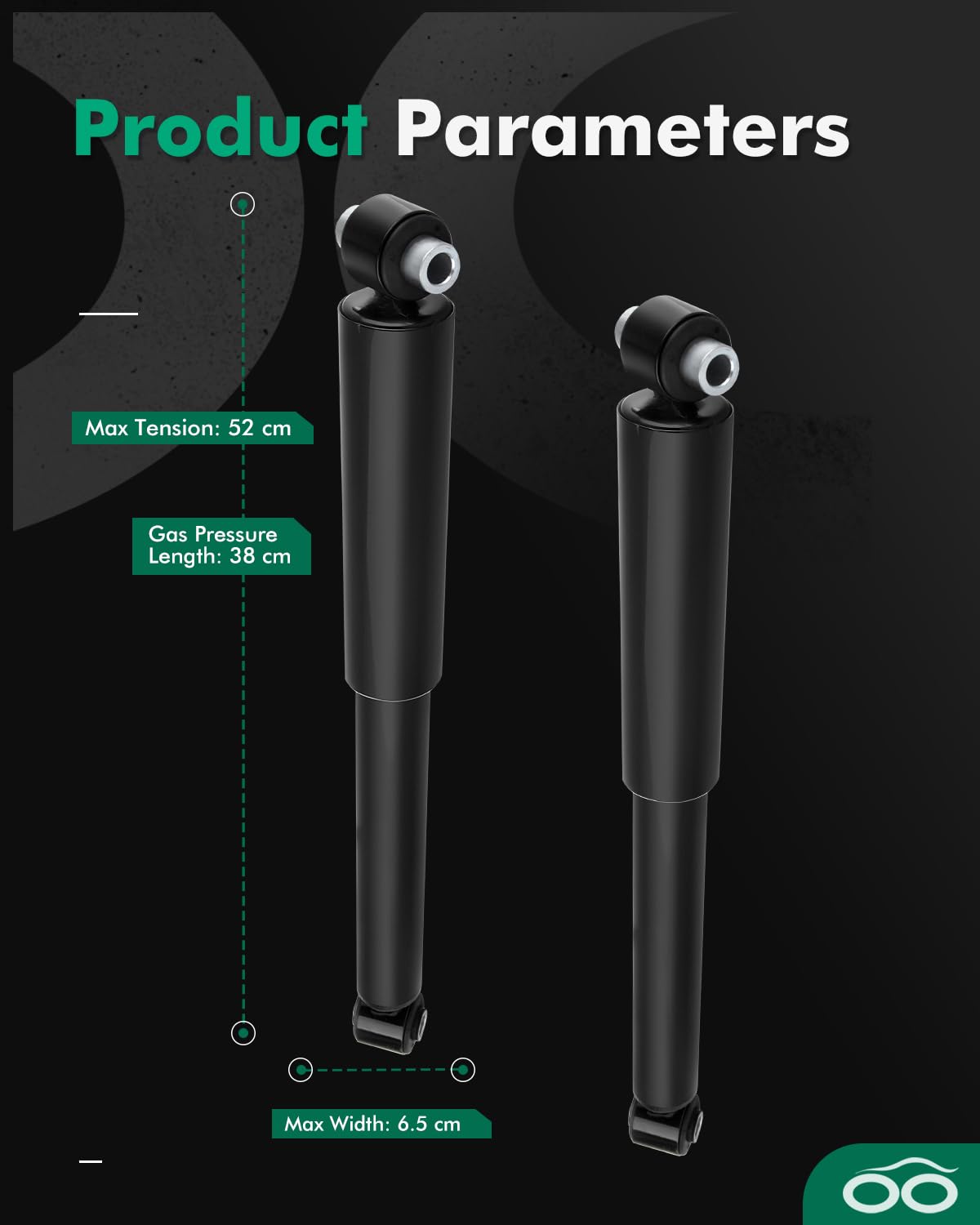 Features1.Easy to Install2.Exact Fit3.Application Specific Valving4.Improved ing of Road Noise, Vibration, and Harshness6.Upgraded Sealing for Longer LifeCompatibility Information:2001-2010 for Chrysler PT Cruiser (Rear)Specifications:Placement on Vehicle: Rear,Left, RightReplacement NO:343385 5989Package Includes:2pcs Shocks Absorbers Tips:1.Due to different production batches, you may receive shock absorbers of different packaging, but the performance and usage of the products are exactly the same 2.To ensure that the shock absorber is not damaged, the shock absorber will be packaged and transported as TWO packages sometimes 3.Shock Absorbers only,not including springs or mounts