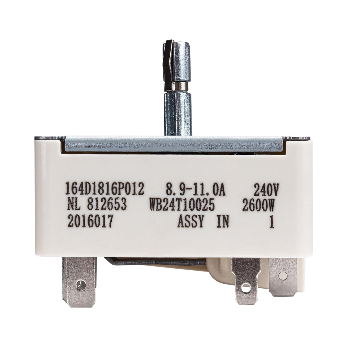 WB24T10025 Surface Burner Control Switch is a crucial component for your electric range. This part is designed and engineered to exact specifications for a good fit and optimal performance. If you're experiencing issues with your heating element, such as it not heating up, not turning on, getting excessively hot, or being unable to adjust the heat intensity, the WB24T10025 Range Infinite Switch is the solution you need. This switch controls the on/off function of the surface element and regulates the amount of heat it produces. Designed specifically for the larger 8-inch burner units, this control switch is compatible with GE electric ranges. It has a power rating of 240V and a current range of 8.9-11.0A, making it suitable for your specific model. Please ensure proper disconnection from the power supply before servicing. It is manufactured using premium materials to ensure durability and a precise fit, allowing you to confidently repair your appliance. The included alternate part numbers -- AP2024072, 769692, AH236750, EA236750, and PS236750 -- indicate its compatibility with various models. Get your electric range back to its optimal performance by replacing the faulty surface burner control switch with the WB24T10025. Enjoy precise control over your cooking with this reliable and high-quality replacement part. Compatible Models: JBP10WD1WW, JBP10WD2WW, JBP19BC1WH, JBP21BC1AD, JBP21BC1CT, JBP21BC1WH, JBP21BC2AD, JBP21BC2CT, JBP21BC2WH, JBP21BC3AD, JBP21BC3CT, JBP21BC3WH, JBP21BC4AD, JBP21BC4WH, JBP21BH1CT, JBP21BH1WH, JBP21WC1WW, JBP21WC2WW, JBP21WC3WW, JBP21WC4WW, JBP21WH1WW, JBP24BB1AD, JBP24BB1CT, JBP24BB1WH, JBP24BB2AD, JBP24BB2CT, JBP24BB2WH, JBP24BB4AD, JBP24BB4WH, JBP24BB5WH, JBP24BH1CT, JBP24BH1WH, JBP24BH2CT, JBP24BH2WH, JBP24BH3CT, JBP24BH3WH, JBP24DB1AD, JBP24DB1CT, JBP24DB1WH, JBP24DB2AD, JBP24DB2CT, JBP24DB2WH, JBP24DB4AD, JBP24DB4WH, JBP24DB5WH, JBP24DH1CT, JBP24DH1WH, JBP24DH2CT, JBP24DH2WH, JBP24DH3CT