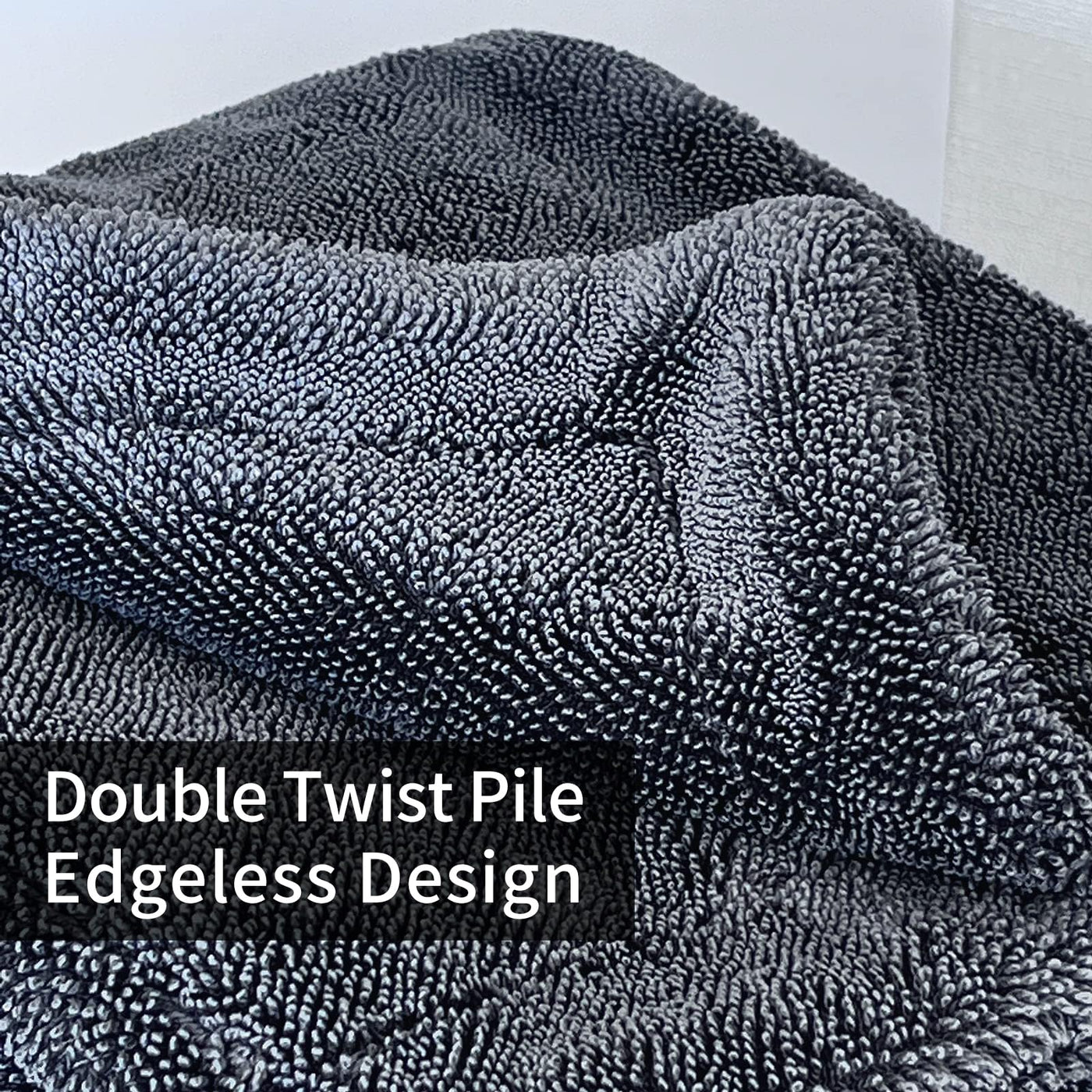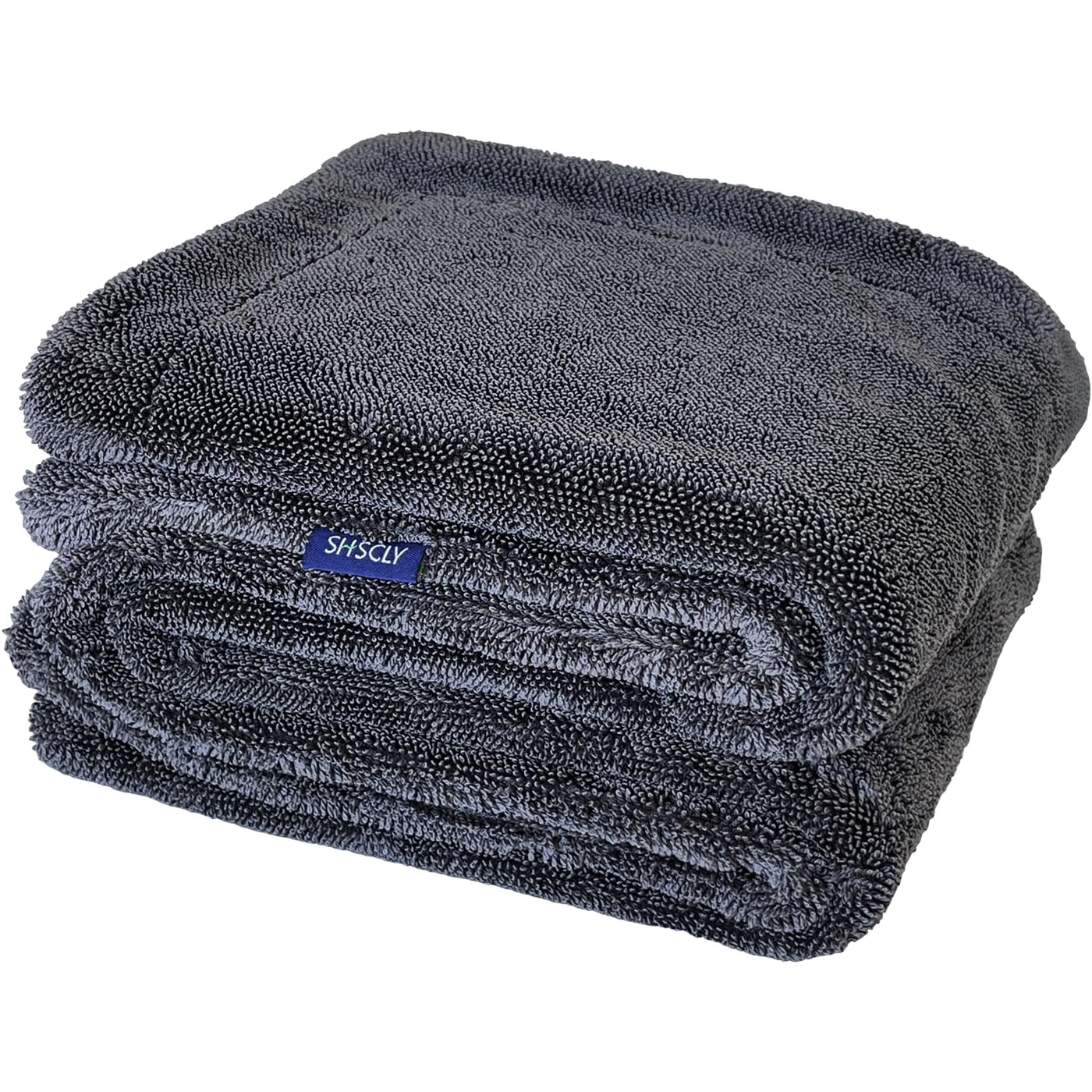SHSCLY Microfiber Car Drying Towel Large Double Twist Pile 1200GSM Gray 35.5 x 24 Inches Pack of 1