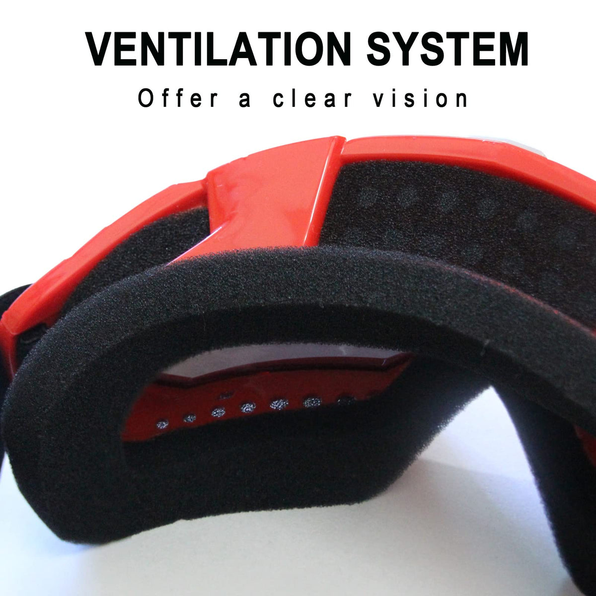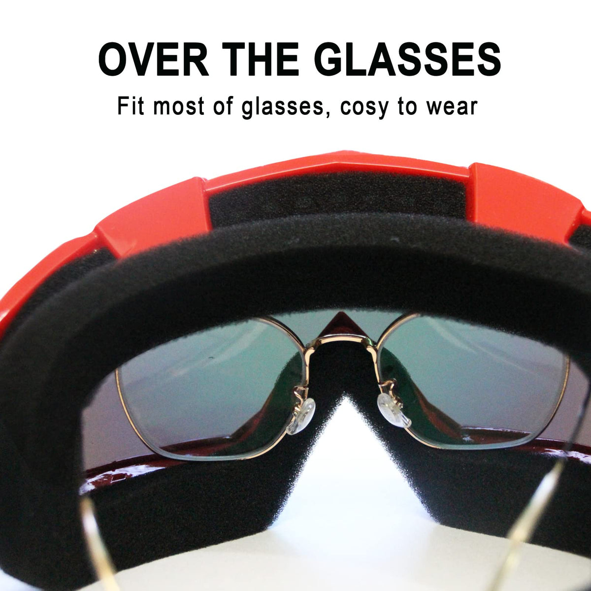 Durable: The atv goggles with bendable flexible frame,can be used for very long time, never out of style. HD visual lens: UV 400 protection, eliminate wind and sand. prevent fog, offer a more clear and wide vision. Fit most of helmets: The motocross goggles with adjustable elastic strap to fit most of size of helmets and head. Suitable Age: The riding goggles fit for different age of people, adults,youth, child, kids, men, women. Over Glasses: The helmet goggles can be over the glasses.