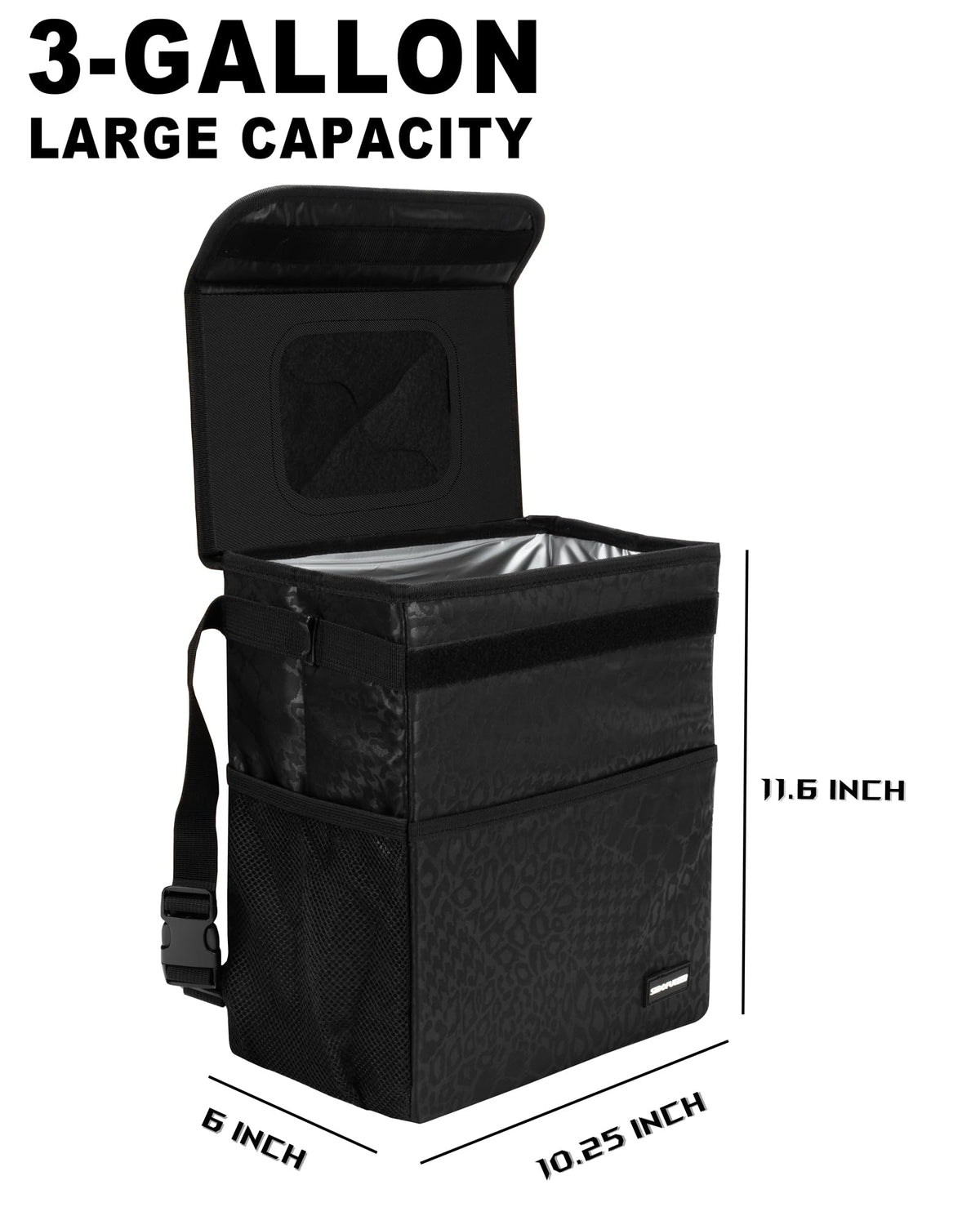 Sibofuego Sturdy 3 Gallon Car Trash Can - Ultra Large Capacity, Leak Proof, Waterproof Car Organizer And Storage With Pockets An