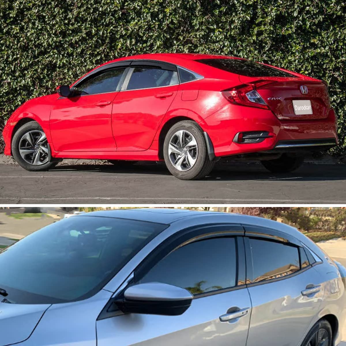 Side Car Window Visor Rain Guards Vent Deflectors For 2016-2021 Honda Civic Sedan, 4-Door Front Rear Sun Shades Window Vent Smok