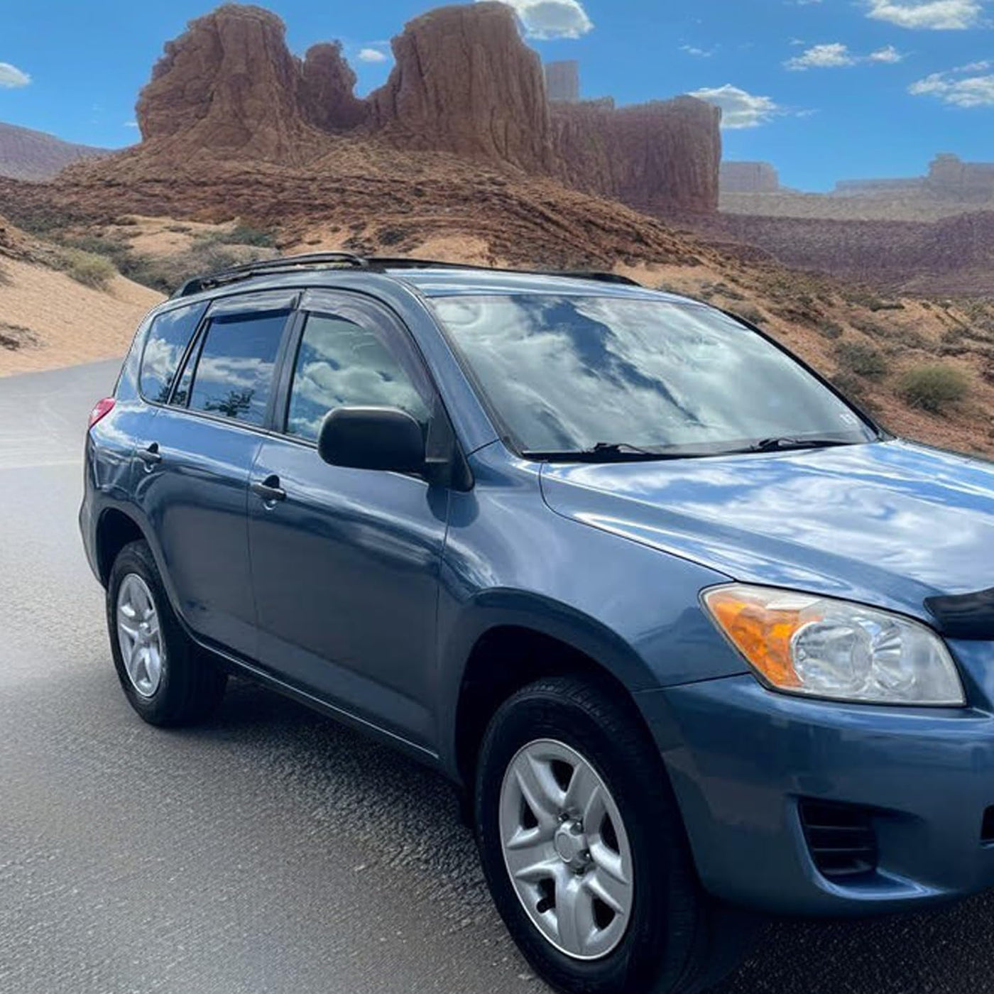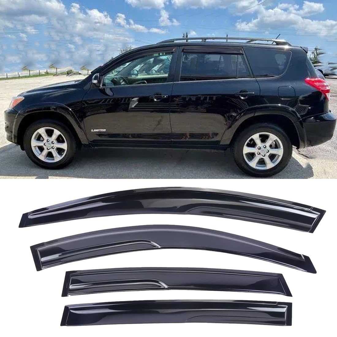Fitment 2006-2012 Toyota RAV4 (XA30) Item-Offered 4pcs vent guard window visors (Installation instruction is included,please check the sample installation picture above for reference) Style Outside Mount Style, Easy Peel-N-Stick Installation. No Cutting or Drilling Required (Stick on to the door & above the windows.Not In-Channel Style) Position 4pcs For Front & Rear (Driver & Passenger) Visors Material Reinforced Acrylic Color Dark Smoke Tint Installation Direct Tape-On Design,Easy Peel-N-Stick Installation.No Cutting or Drilling Required Item's-Condition-Function * Fully window protected from sun shade, wind, rain, snow deflector. * Help reduce heat buildup in park vehicles by allowing air in when partially open. * Long lasting material designed to withstand the rigors of the elements. * Make it possible to leave the windows down a few inches to get fresh air even on rainy days. * Dramatically Improve Styling & Appearance.