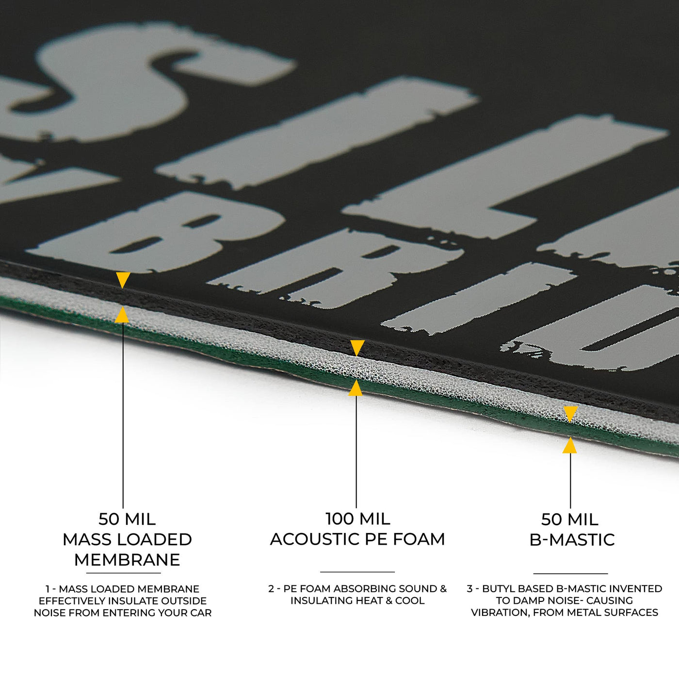 Siless Hybrid 3In1 200 Mil 25 Sqft Car Sound Deadening Mat - Butyl Automotive Sound Deadener - Noise Insulation And Vibration Dampening Material