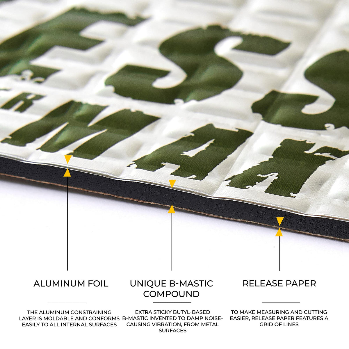 Sound Deadening is one of the most effective things you can do to your car to improve sound quality and eliminate road noise. SILESS was originally designed for the automotive industry and engineered for car soundproofing and sound dampening. By reducing or dampening sound vibration in the metal panels of your car, you can eliminate road noise. Whether you are trying to improve the quality of your car stereo or give your vehicle that luxury car feel, SILESS is the ideal material. Unlike some other companies, who use repurposed asphalt roofing materials, SILESS created industry approved Bmastic technologically advanced formulation that is lightweight, easy to cut, super sticky, and 20-30% more effective than any competitors on the market. Some companies use technology and processes created over 10 years ago, and selling their products at a price 3 times higher than Siless. SILESS will install easily and stick to all and any interior surfaces, such as; floors, doors, roof, hood, trunk lid, quarter panels and will easily stick to a any other surface and will stay in place without any special preparation, and without any messy drippings and odor. Installing together SILESS VIBRO and SILESS LINER - such as SILESS 157 mil and youve got a ride with even more noise-blocking outcome. First layer of SILESS VIBRO provides 65% off road noise and vibrations and then second layer of SILESS LINER provides 35% coverage from excessive heat. Together, it is ULTIMATE SOLUTION for your sound dampening needs. Finally, SILESS today - the most advanced, industry approved, ultimate sound dampening material on the market.