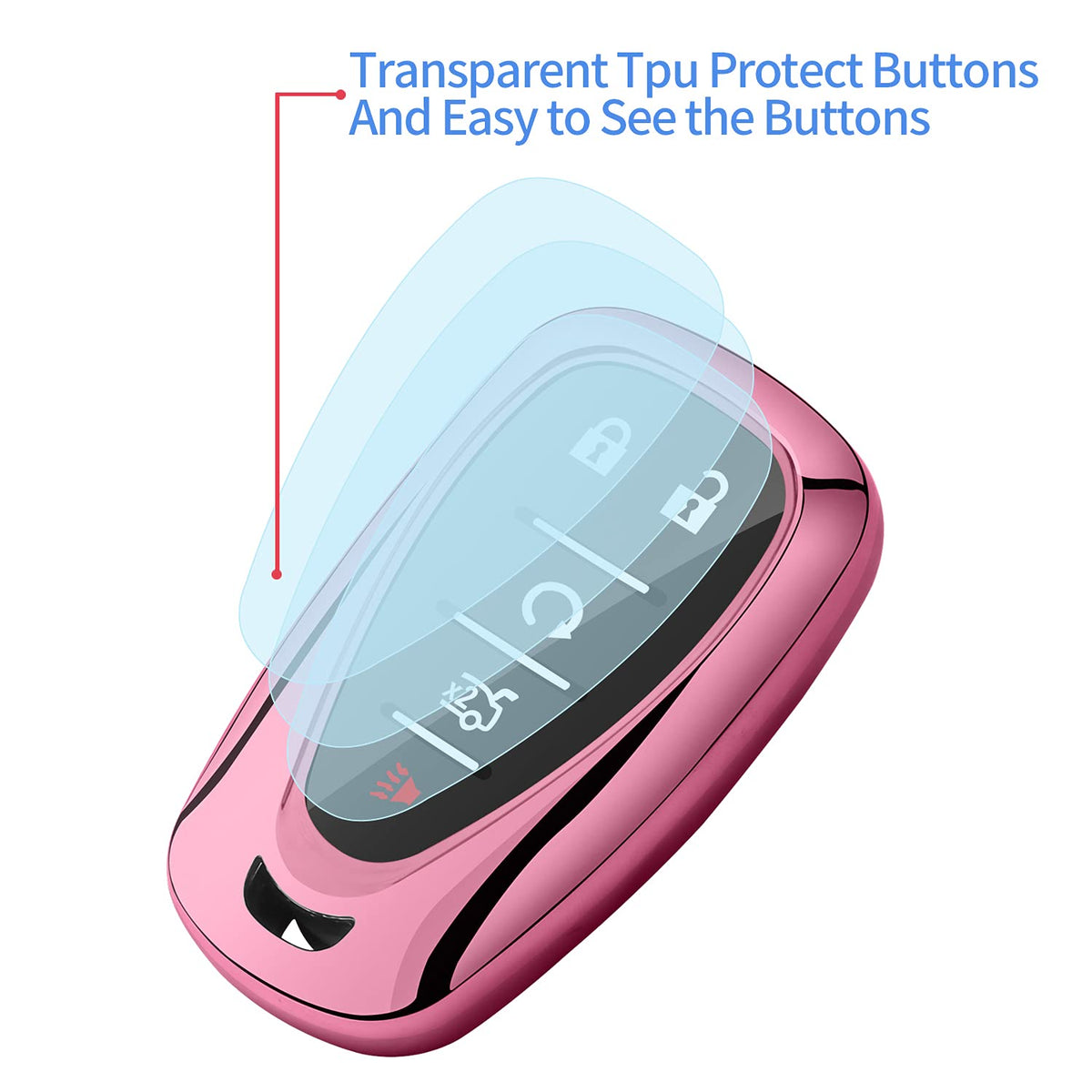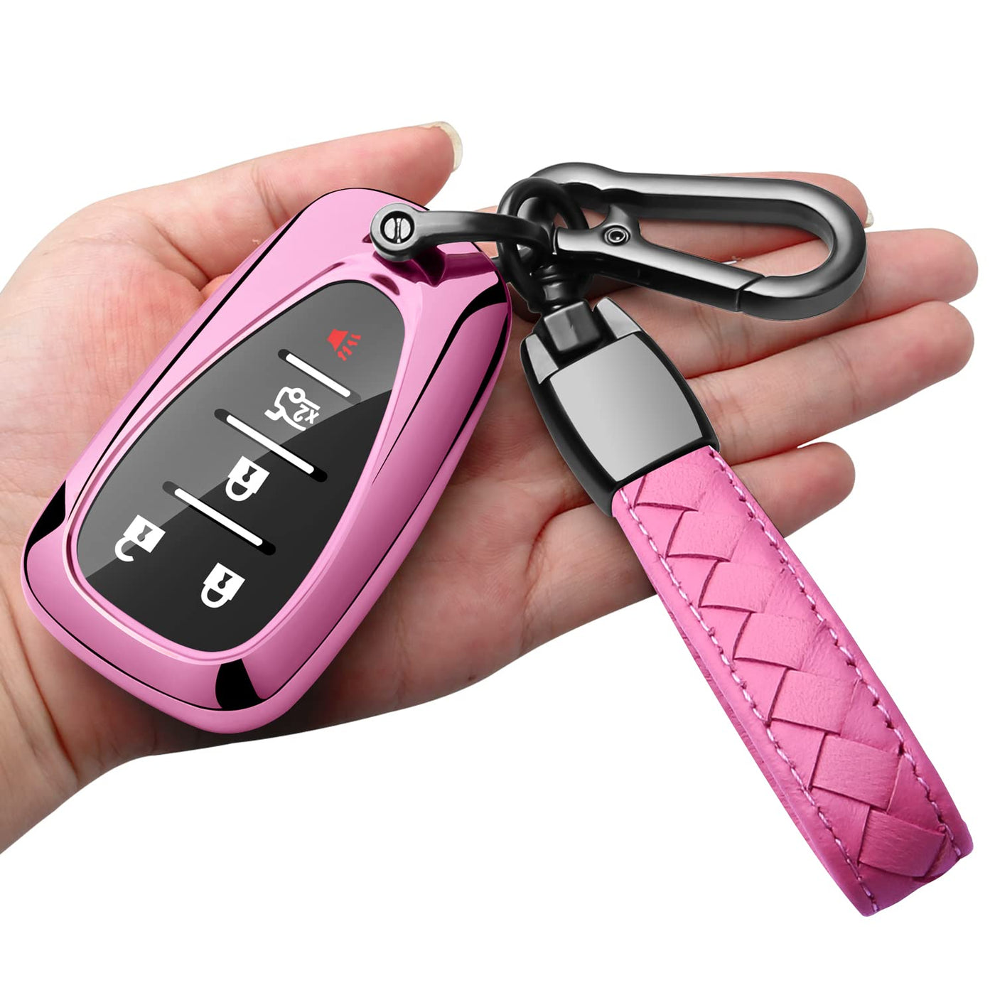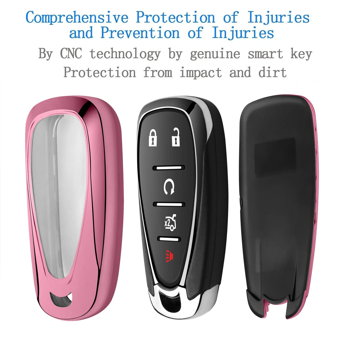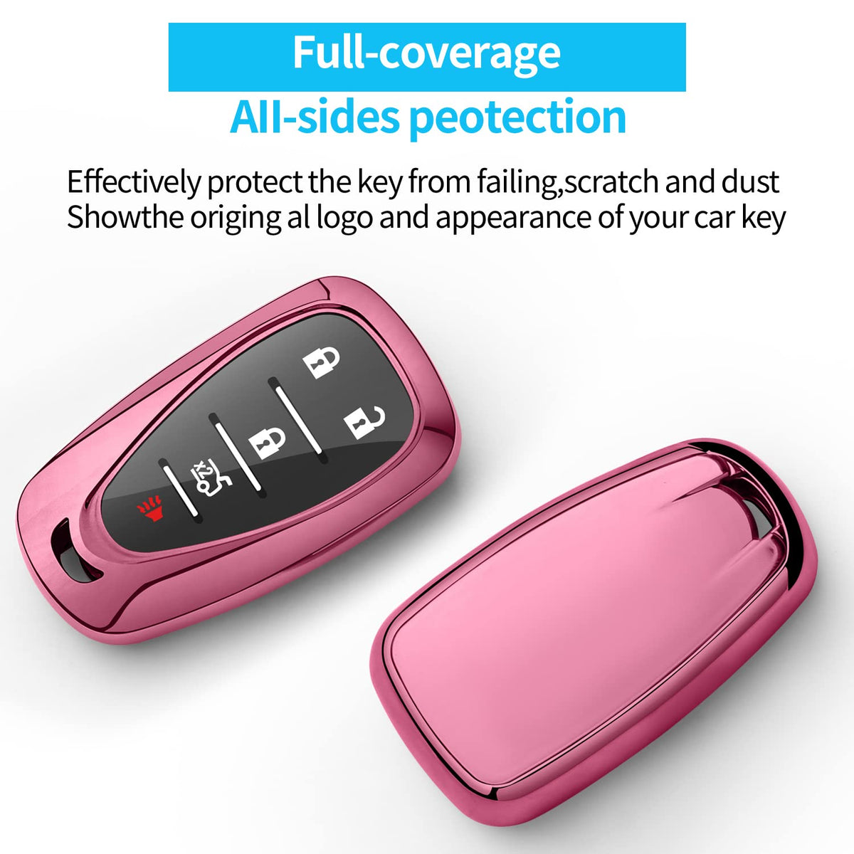 Sindeda For Chevrolet Key Fob Cover With Keychain Full Protection Key Shell Case Compatible With Chevrolet 2017-2021 Chevy Malibu Camaro Cruze Traverse Sonic Volt Bolt Equinox-Pink