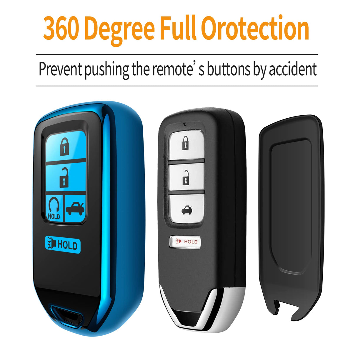 Fits Model:Compatible With Honda Civic, Accord, Pilot, CRV, HRV, CRZ ,Fit , Odyssey , Ridgeline ,JED ,Crosstour , Crider and Spirior etc smart key. | Note: Even though the car model is the same, but the car key might be different based on the different year of manufacturing, so please Double Check your Key Fob with the picture at left before Purchasing. | Material: Using high-quality soft TPU material, new electroplating process. Add a frosted texture to the surface of the key cover. Perfectly fit the original smart key. | Particularity: 360-degree protection, matte texture. The shock absorption design protects your car keys from scratches. With the attached key chain, it is easy to carry. This key cover does not affect the signal, nor will it cover the original LOGO of the car key. | Worry-free purchasing: If you have any issues with this key case, please feel free to contact us through Amazon Message Center, a satisfying solution is promised.
