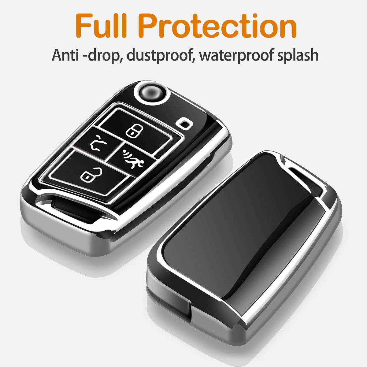 Sindeda For Volkswagen Key Fob Cover With Keychain Soft Full Protection Key Shell Key Case Compatible With Vw Tiguan Golf Jetta Polo Atlas Skoda (Silver)