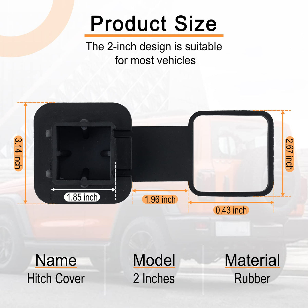 Q: What vehicles are compatible with the SINGARO 2-inch hitch cover?A: The SINGARO 2-inch hitch cover is designed to fit most vehicles with a standard 2-inch receiver tube, making it suitable for trailers, towing hitches, and various car models. It is recommended to measure your receiver size before purchasing to ensure a proper fit.