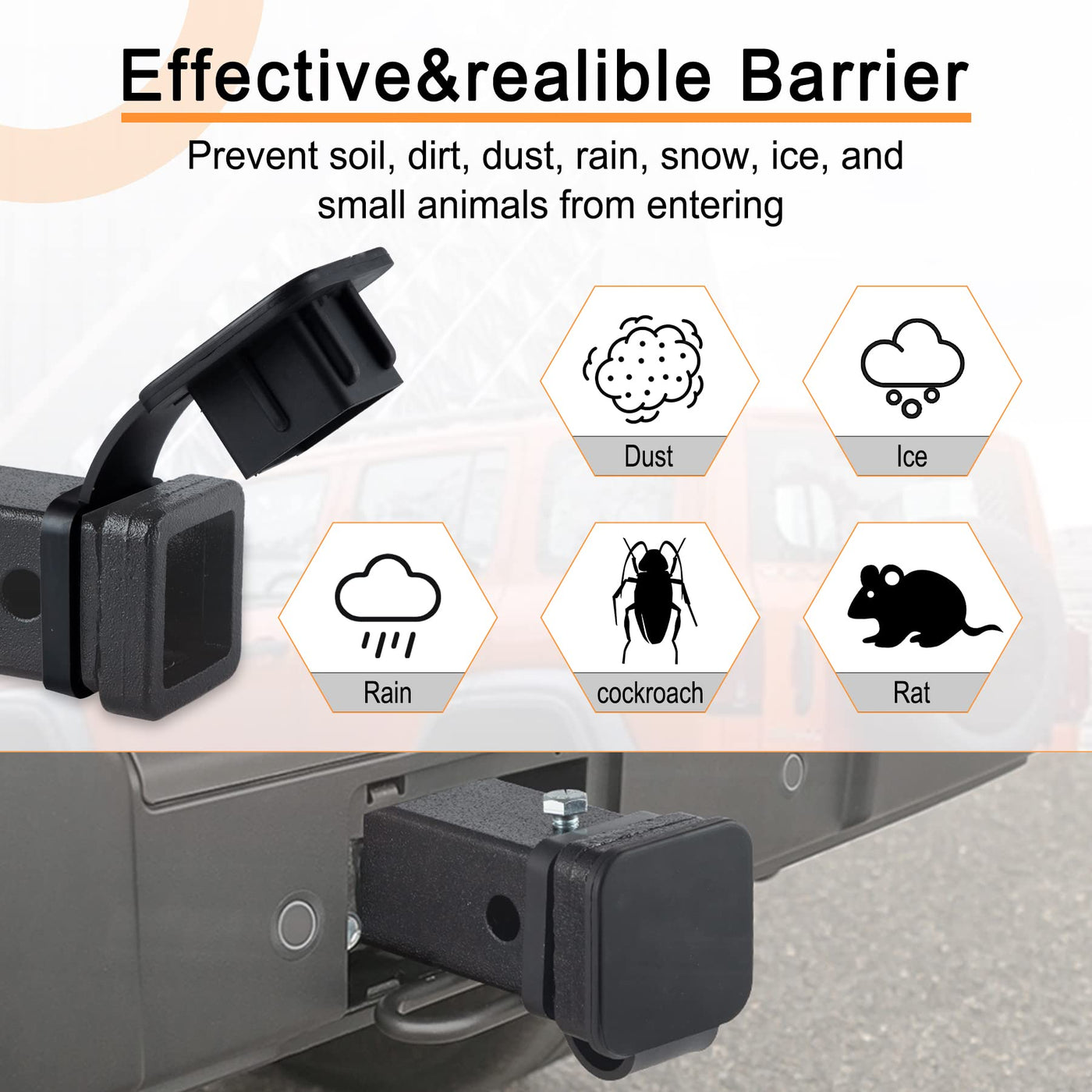 Q: How does the hitch cover protect my receiver tube?A: The SINGARO hitch cover effectively keeps mud, dirt, dust, rain, snow, and ice out of your receiver tube. By preventing these elements from entering, it helps to avoid rust and damage, prolonging the life of your hitch.