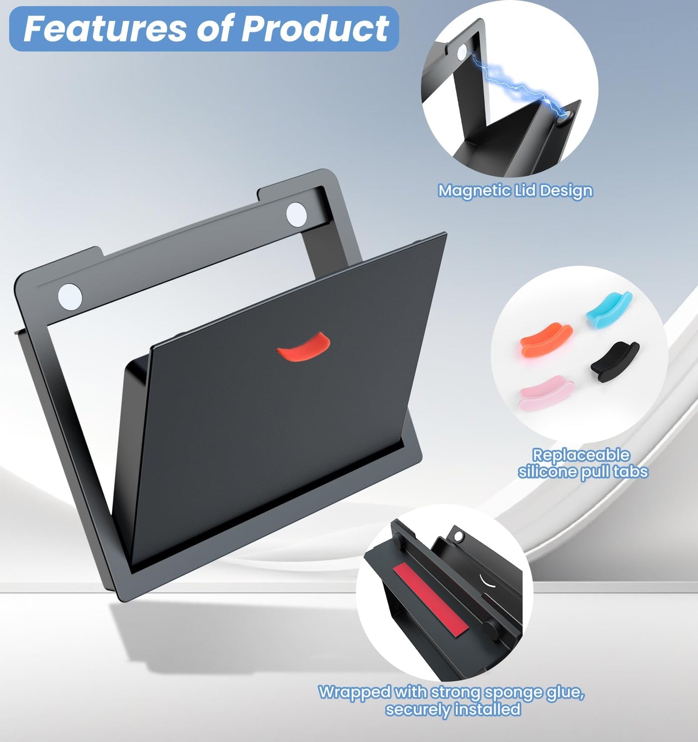 Q: How easy is it to install the center console organizer?A: Installation is straightforward and can be completed within one minute. The hidden box comes with strong sponge glue and a magnetic lid design, making it easy to open and close. Additional silicone sheets are included for personalized use.