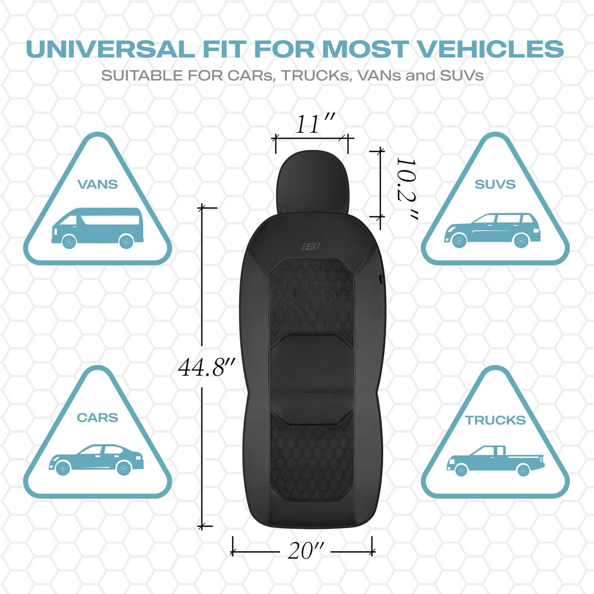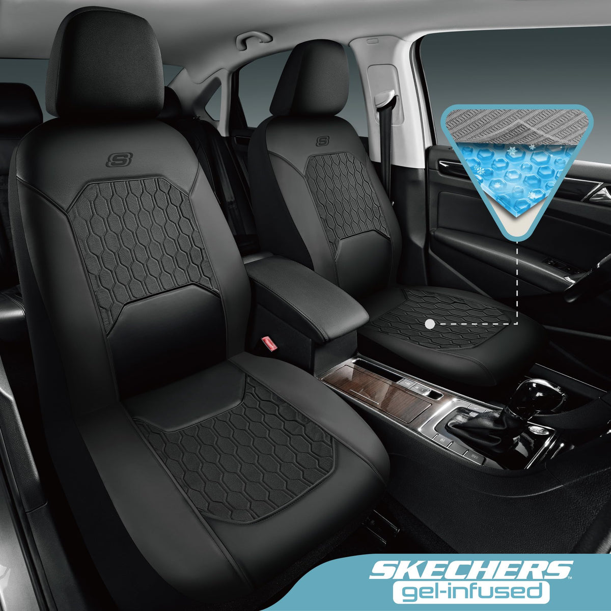 Skechers GEL Seat Covers,Cooling Car Seat Covers,Leather Seat Covers Full Sets,Airbag Compatible,Automotive Comfort Universal Fit for SUVs,Vans,Sedans,Cars,Trucks,Black