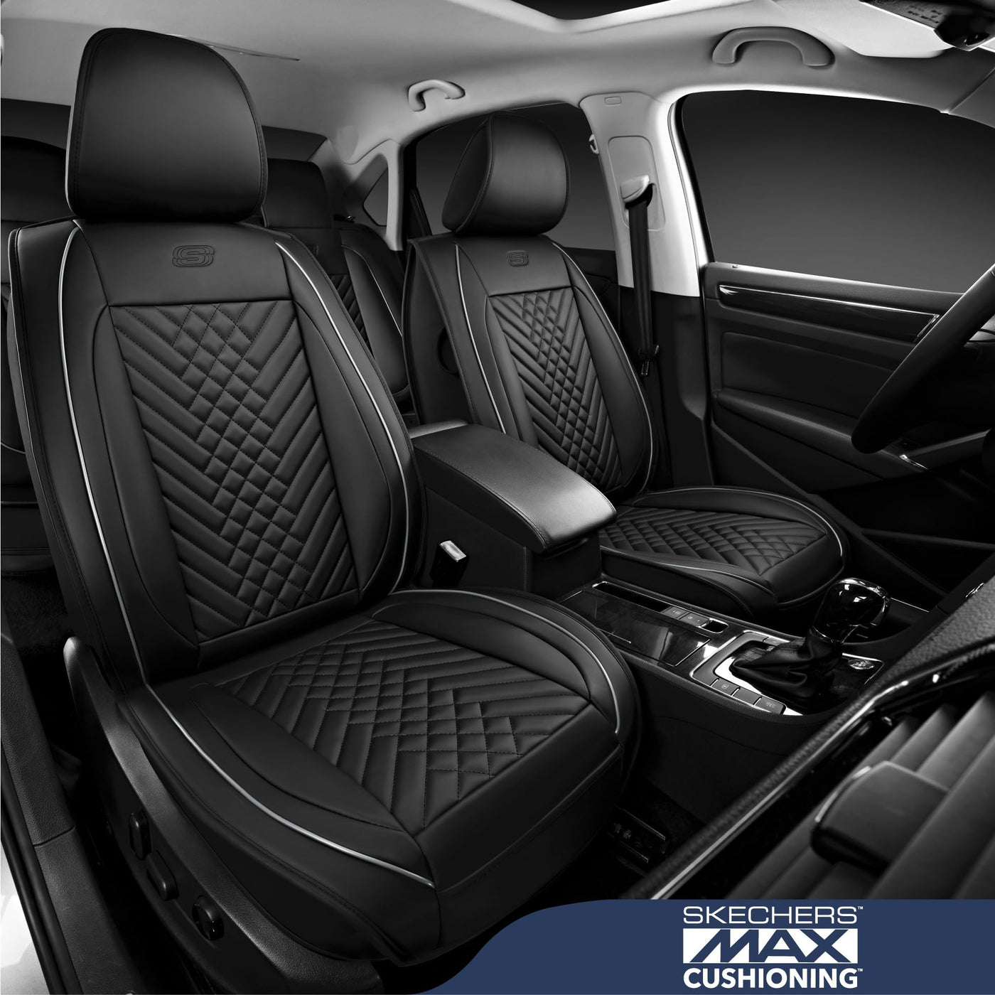 Skechers MAX Cushioning Car Seat Covers,Memory Foam Piping Leather Seat Covers,Waterproof Car Seat Protector Front Seats,Car Sea