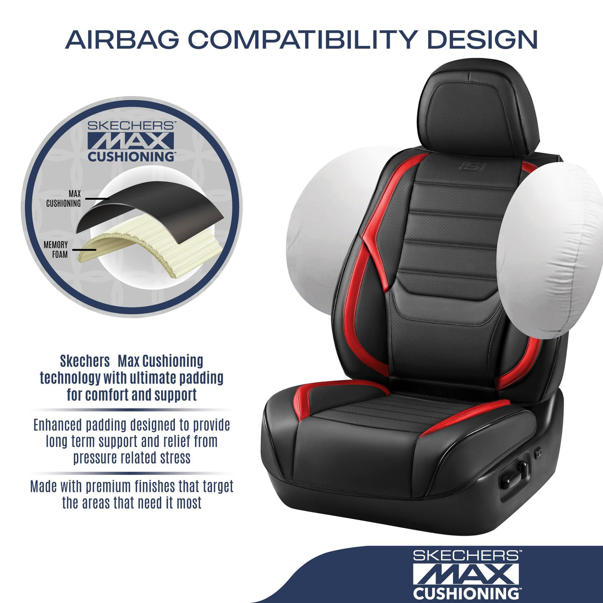 Skechers MAX CUSHIONING Seat Covers,Memory Foam Leather Car Seat Covers,Waterproof Car Seat Protector Front Seats,Car Seat Cushion Airbag Automotive Universal Fit for Most Cars,Vans,Trucks,SUV,Red