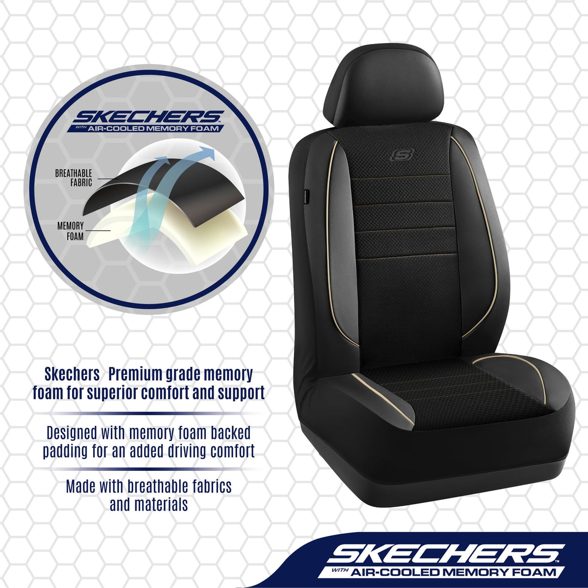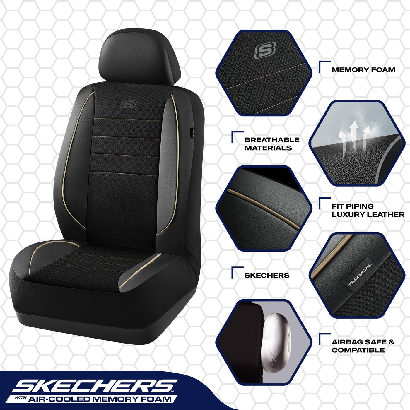 Skechers Memory Foam Car Seat Cover,Air Cool Mesh Thick Seat Covers,Piping Leather Two Front Car Seat Protector,Airbag Compatibl