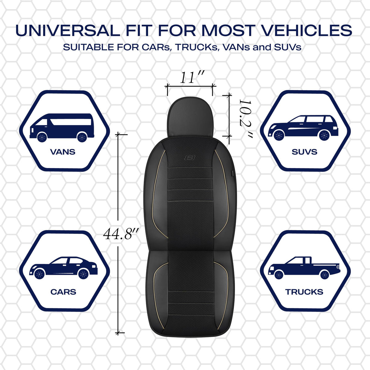 Skechers Memory Foam Car Seat Cover,Air Cool Mesh Thick Seat Covers,Piping Leather Two Front Seat Covers ,Airbag Compatible,Automotive Comfort Seat Cover for Most Cars,Vans,Trucks,SUV(Beige,Two Front)