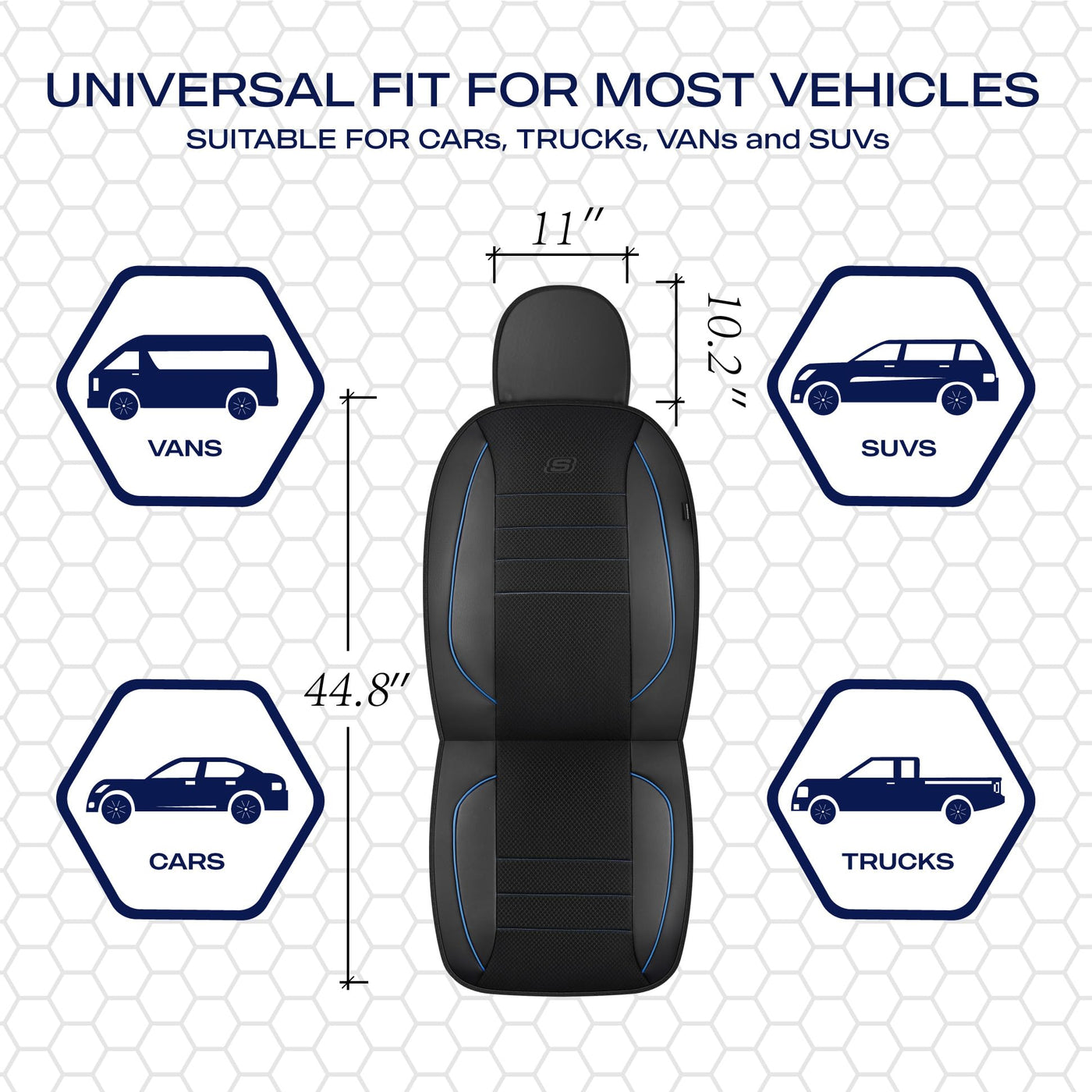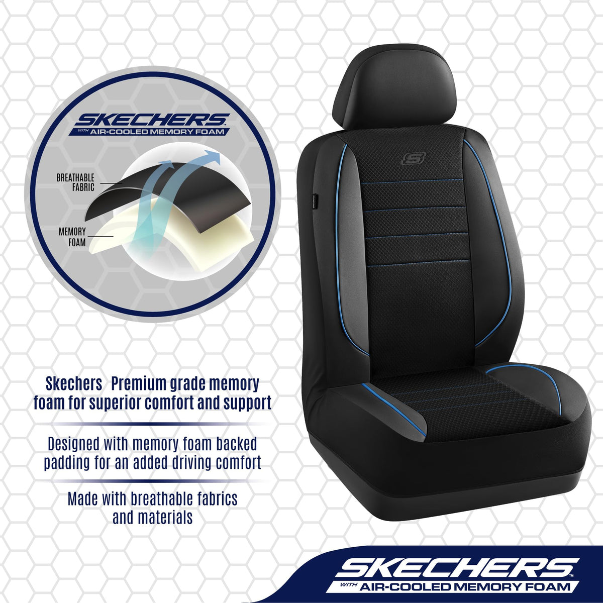 Skechers Memory Foam Car Seat Covers,Air Cool Mesh Thick Seat Covers,Piping Leather Two Front Seat Covers ,Airbag Compatible,Automotive Comfort Seat Covers for Most Cars,Vans,Trucks,SUV(Blue,Two Front)
