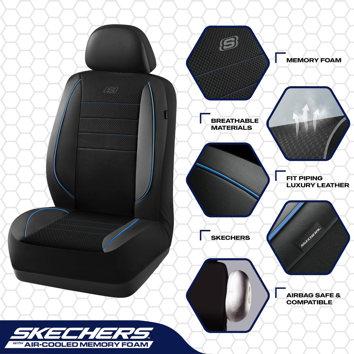 Skechers Memory Foam Car Seat Covers,Air Cool Mesh Thick Seat Covers,Piping Leather Two Front Car Seat Protector,Airbag Compatib