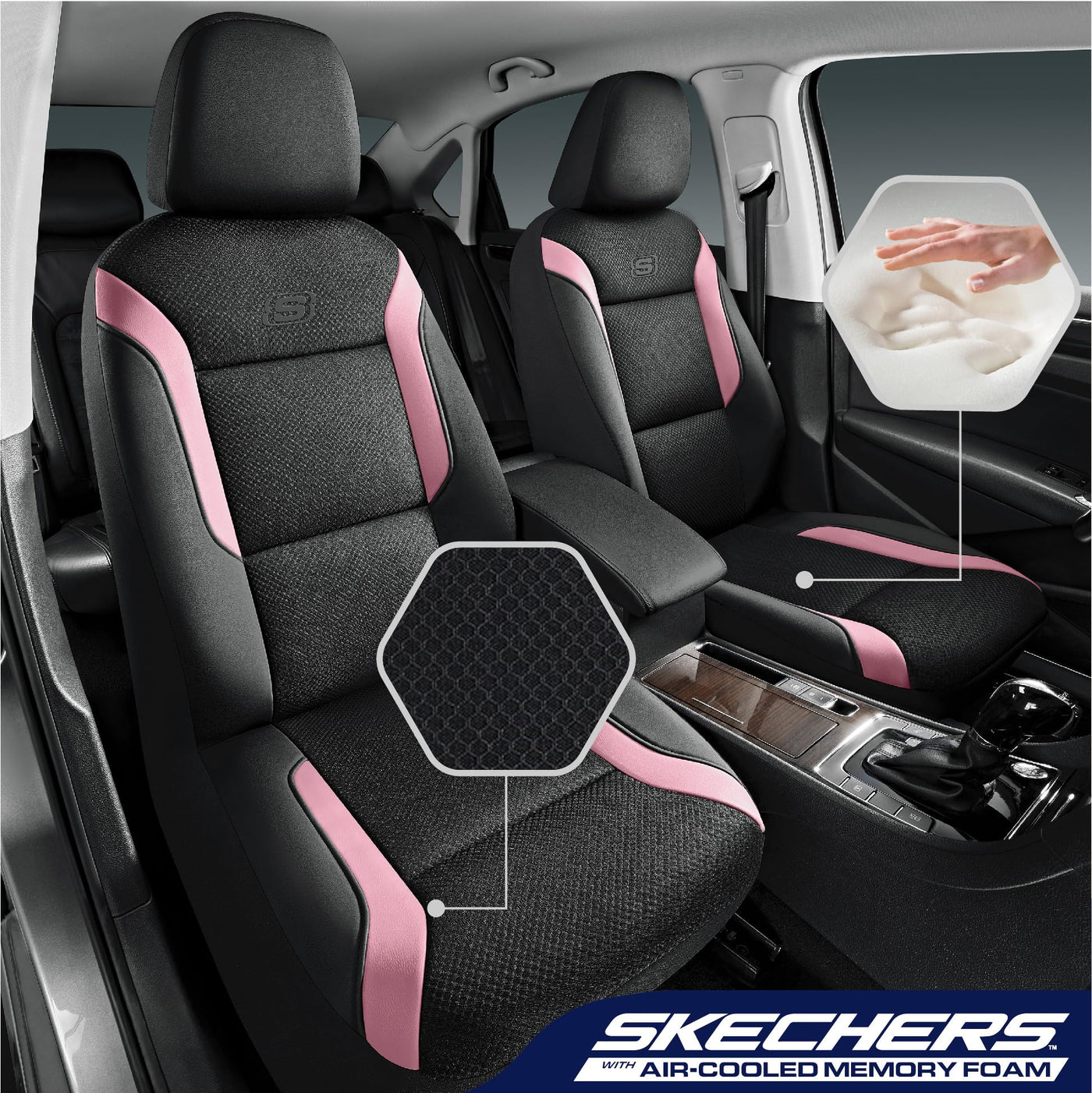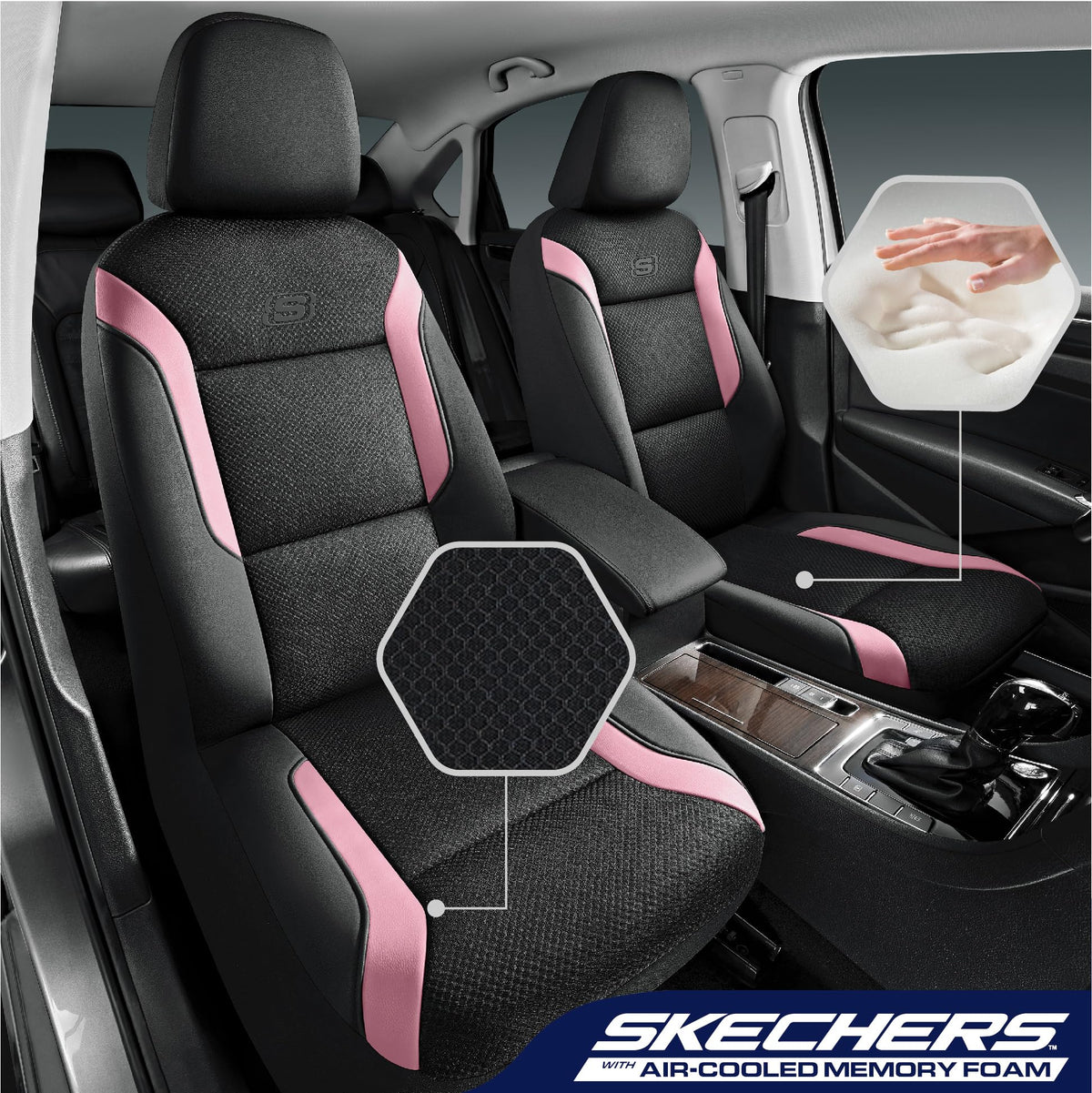 Skechers Memory Foam Car Seat Covers, Air Cool Mesh Thick Seat Covers, Two Front Seat Cover, Airbag Compatible, Automotive Comfo