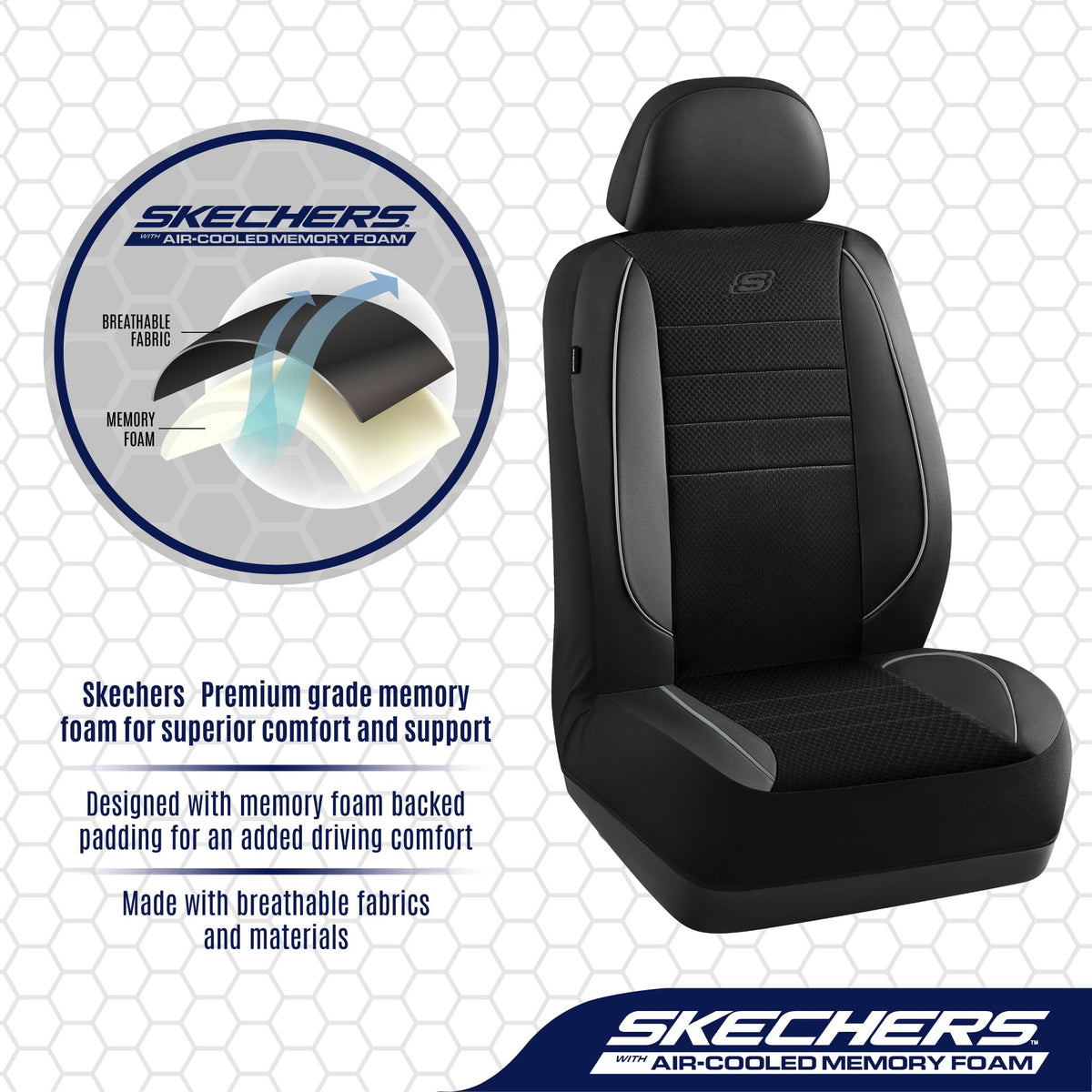 Skechers Memory Foam Seat Covers,Air Cool Mesh Thick Car Seat Covers,Piping Leather Car Seat Protector,Airbag Compatible,Automot