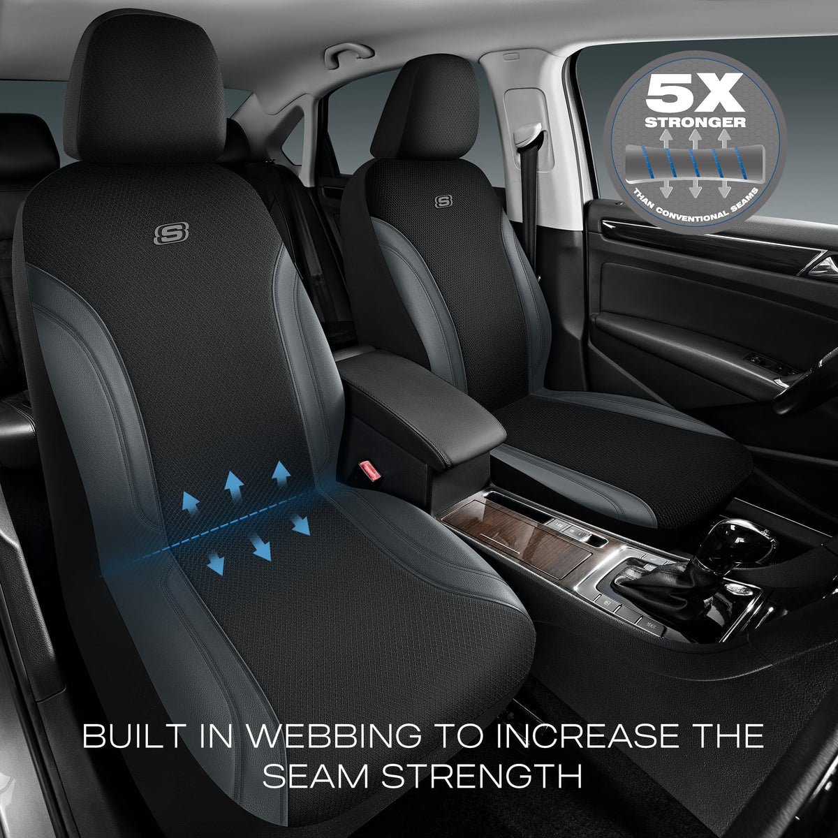 Skechers Work Car Seat Covers,Leather Seat Covers,5-Times Stronger Built In Webbing, Oxford Fabric Car Seat Cover ,Airbag Compatible,Automotive Comfort for Most Cars,Trucks,SUVs (Grey,full set)