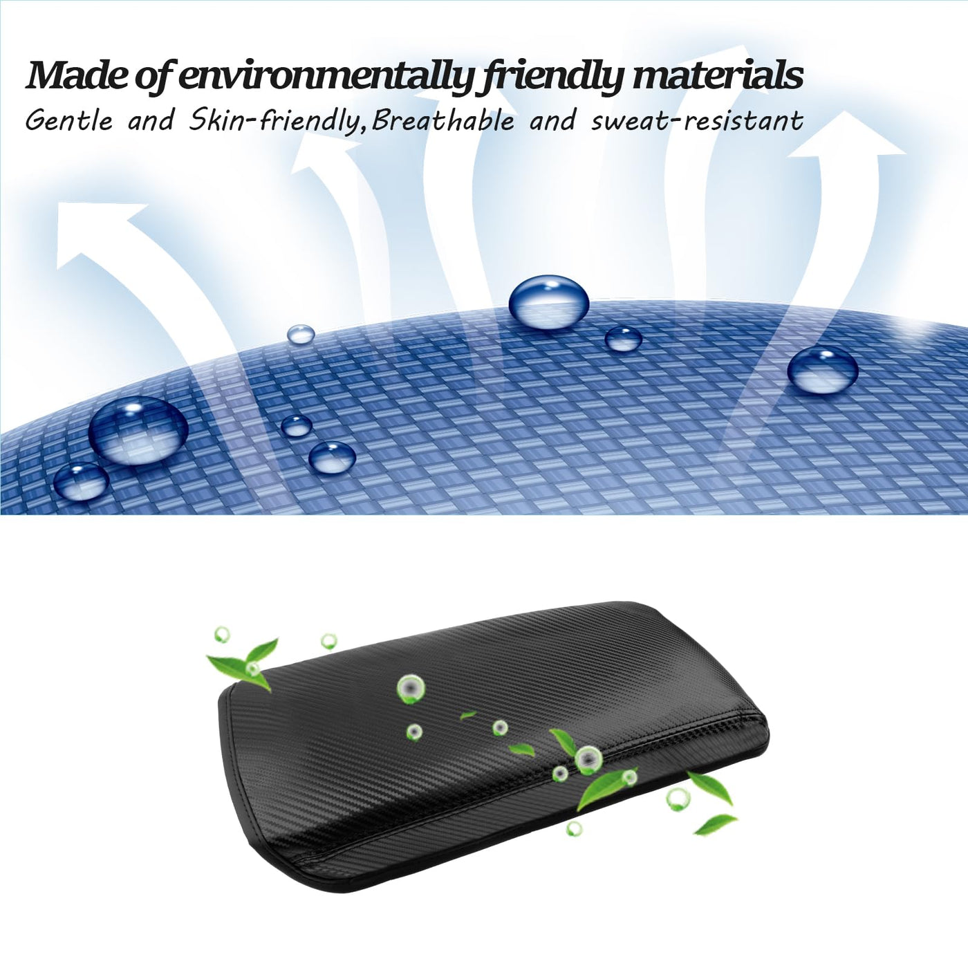 Q: What material is the SKTU armrest pad made of?A: The armrest pad is made from high-quality PU leather, which is durable, waterproof, and easy to clean. This material provides a soft and comfortable surface for your arm while driving.