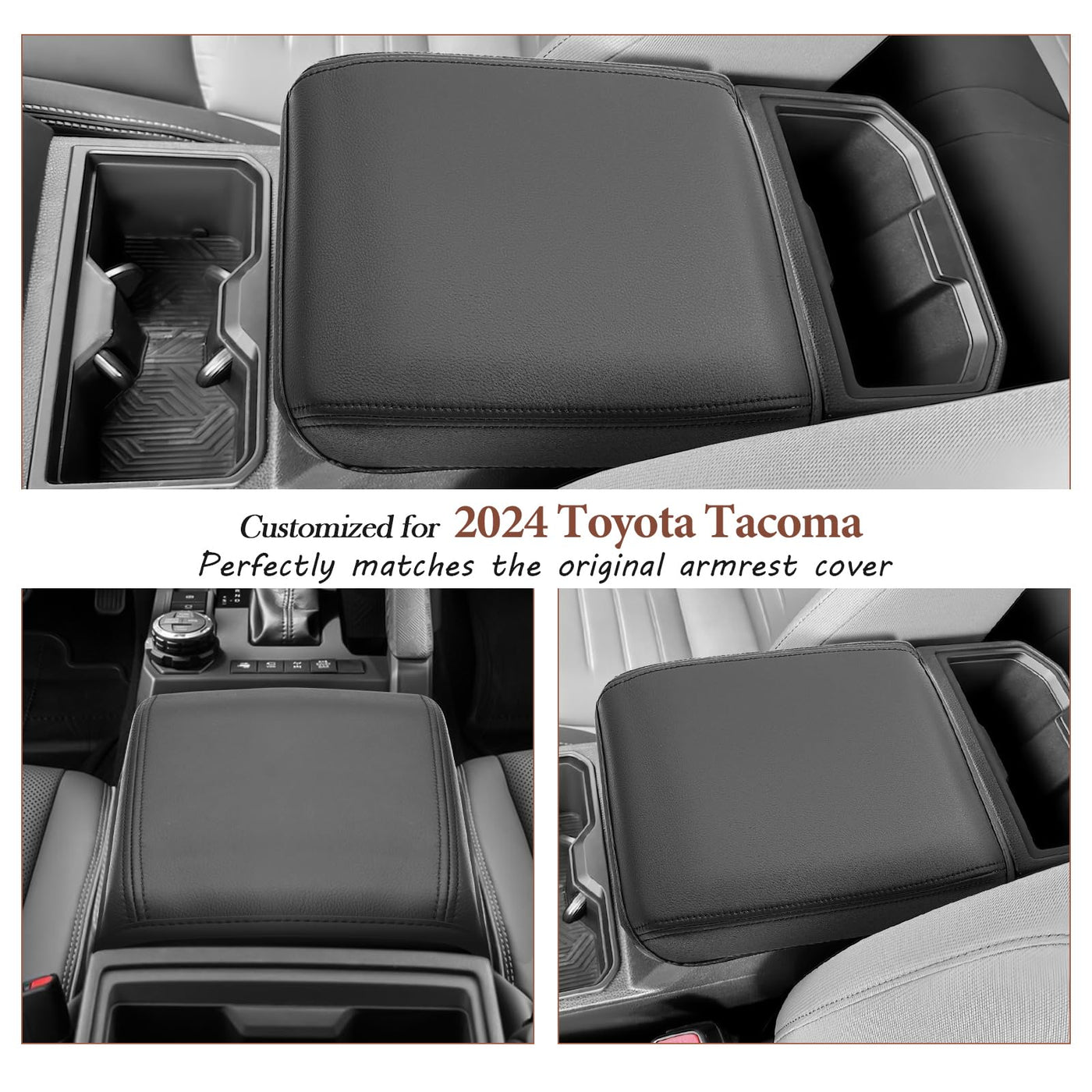 Q: How does the armrest cover protect my 2024 Tacoma's interior?A: The SKTU armrest cover provides comprehensive protection against pet claws, dirt, scratches, and sweat, effectively preventing aging and damage to your original 2024 Tacoma armrest box.