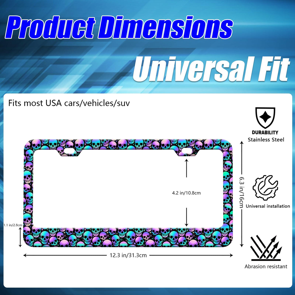 Skull License Plate Frames Halloween Skeleton License Plate Holder for Car Decor Parts Personalized Stainless Steel License Plat