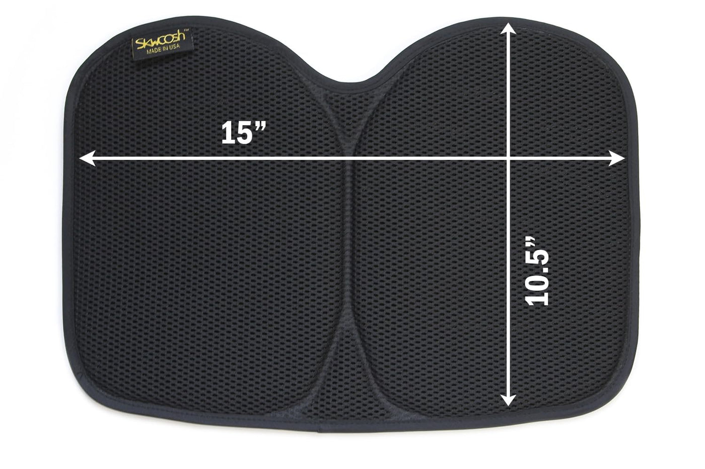 Q: Is the Skwoosh gel cushion suitable for long flights?A: Yes, the Skwoosh gel cushion is designed to relieve pressure on the 'sitz' bones and maintain circulation, making it an excellent choice for long flights. It helps reduce numbness and lower back discomfort, enhancing overall sitting comfort.