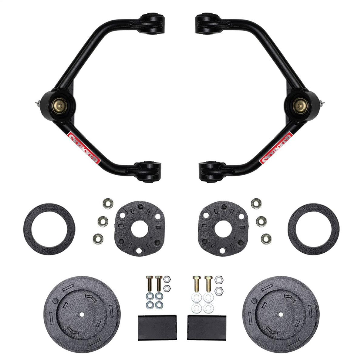 Heavy Duty Dom Steel Gusseted Tubular Upper Control Arms. Built-In Camber Correction And Optimized Ball Joint Angles. Uca Pressed-In Hd Oem Grade Greasable Ball Joints. Uca Pressed-In Oem Style Steel Encased Rubber Bushings. Diff Spacers Lower And Correct Cv And Driveshaft Angles. Prevents Cv Axle Overextension Within The Oem Tolerances. Forged Torsion Bar Keys Provide Reinforced Strength. Properly Indexed Keys Relieve Oem Component Strains. Rear Block And U-Bolt Kit Delivers A More Level Stance. Specifically Engineered To Maintain Proper Suspension Geometry. Suspension Upgrade With On And Off-Road Performance. Aggressive Look/Unparalleled Performance/Impressive Ride.