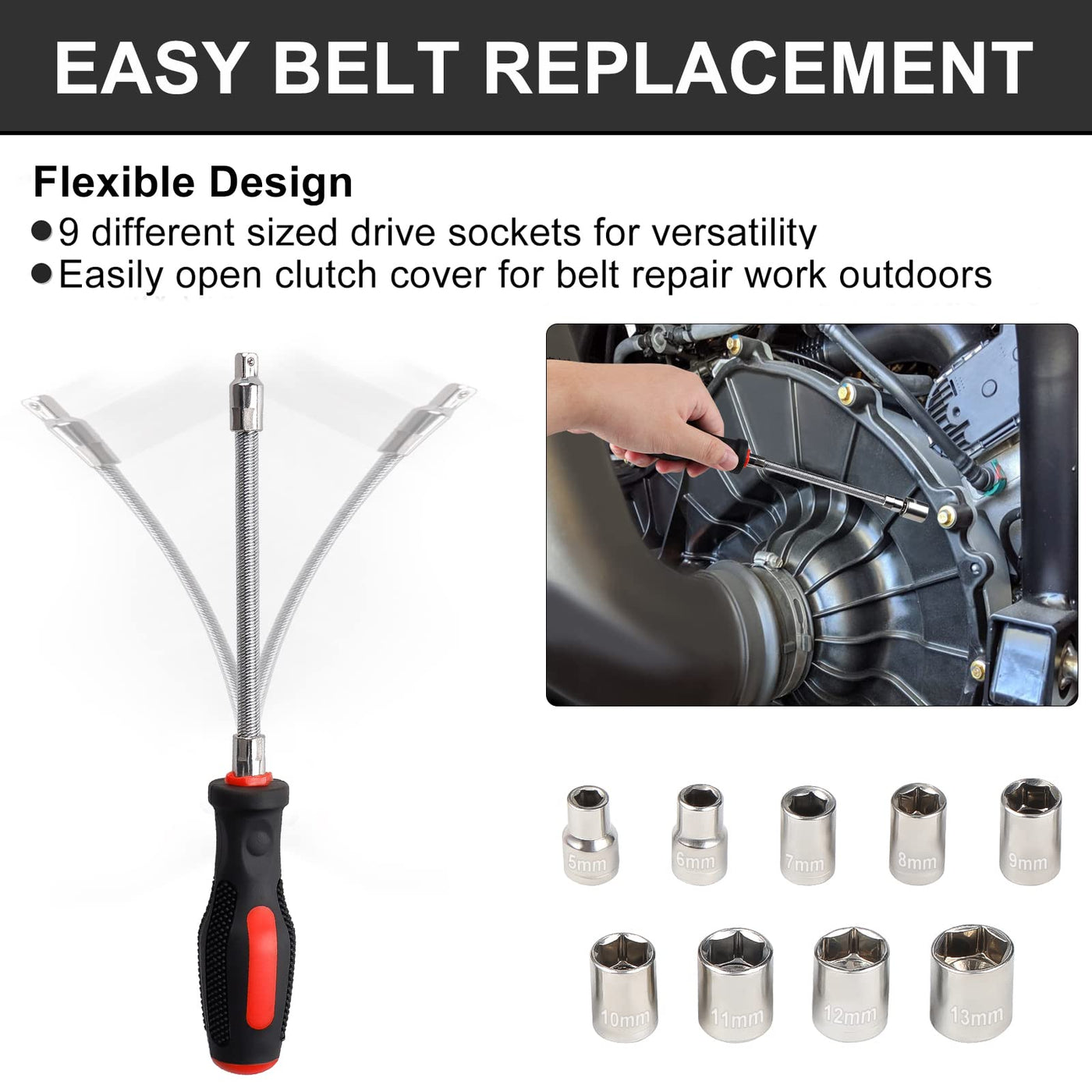 Why Choose The Skyjdm Belt Change Tool Kit Compatible With Polaris? The Skyjdm Belt Change Tool Kit Helps You Change The Belt On Your Machine Easily And Efficiently. Belt Removal Tool & Belt Changing Tool L-Screw: Helps To Easily Deploy The Clutch And Remove Tension From The Belt, Making Belt Changes Quick And Easy, With A Non-Slip Handle Design For Comfortable Grip And Ease Of Use Clutch Cover Removal Tool Kit With (5-13Mm) Drive Sockets: Flexible Design Allows Easy Access To Hard-To-Reach Bolts On The Clutch Cover, Features 9 Different Size Drive Sockets That Can Handle A Variety Of Bolt Sizes To Ensure You Have The Right Tool For The Job Belt Changing Tool Kit Fitment: Compatible With 2014-2019 Polaris Rzr Xp 1000 Compatible With 2014-2019 Polaris Rzr Xp4 1000 Compatible With 2011-2013 Polaris Rzr Xp 900 Compatible With 2009-2014 Polaris Rzr 800 Compatible With 2009-2014 Polaris Rzr S 800 Compatible With 2013-2017 Polaris Rzr 570 Compatible With 2016-2019 Polaris Rzr Xp Turbo Compatible With 2018-2019 Polaris Rzr Rs1 Compatible With 2018-2019 Polaris Rzr Xp Turbo S Belt Changing Tool L-Screw Replacement For 2875911 Fitment: Compatible With 2016-2019 Polaris Rzr Xp Turbo Compatible With 2016-2019 Polaris Rzr-4 Xp Turbo Compatible With 2018-2019 Polaris Ranger Xp 1000 Compatible With 2019 Polaris Ranger Crew Xp 1000 Compatible With 2018-2019 Polaris Rzr Rs1