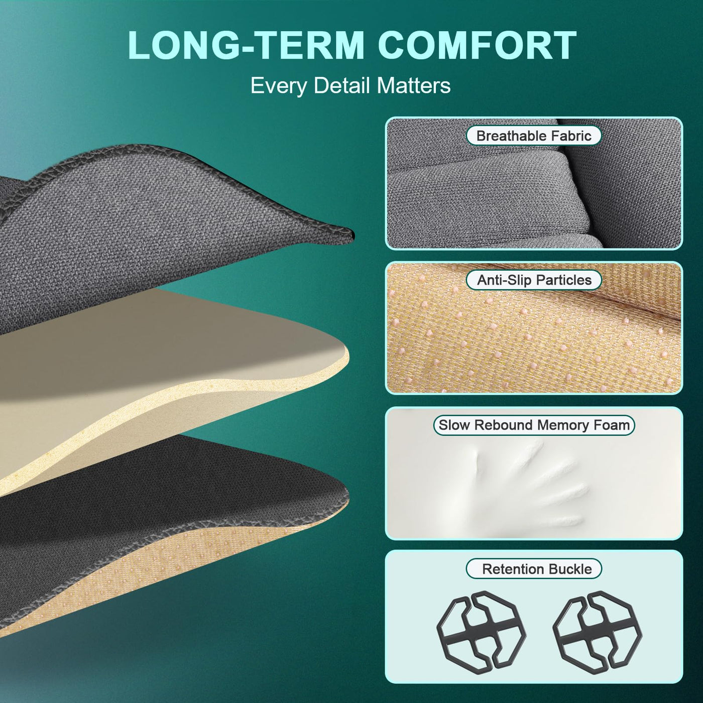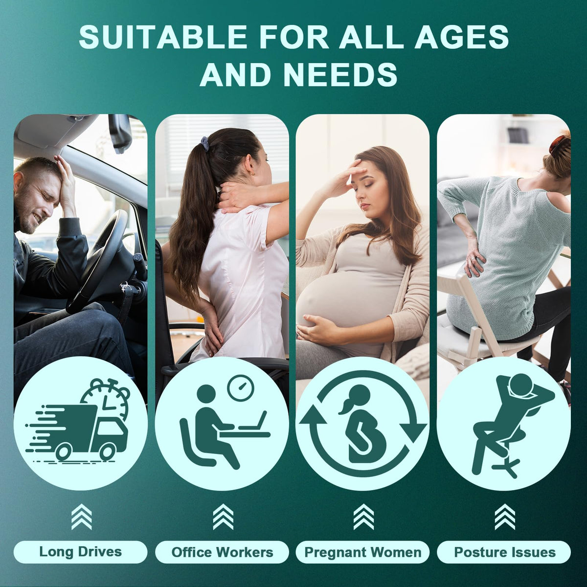 Our car seat cushion with back support pillow is made of comfortable memory foam. This slow rebound memory foam has good compression resistance and provides a soft, comfortable seating experience along with good support, effectively reducing fatigue from prolonged sittingAdditionally, it protects your seats from wear and tear, scratches, and other potential damage, extending their lifespan. Featuring convenient storage pockets for your essentials and a non-slip silicone bottom to keep it securely in place, this cushion is designed for practicality.Versatile enough for use in cars, office chairs, gaming setups, or wheelchairs, you can enjoy a comfortable sitting experience wherever you are.