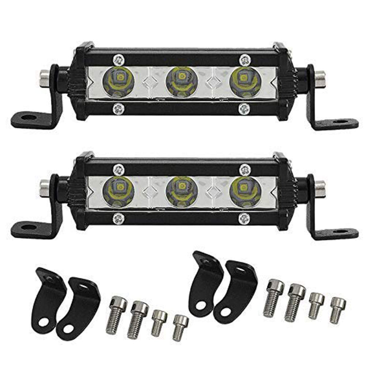 Specifications: LED Power: 15W (3 x 5W/pcs High Intensity LEDs) Beam Pattern: Spot Beam (Best choice as Fog lights) Operating Voltage: 10-30V DC(Fit 12V,24V Vehicles,Cars,Trucks ect.) Lifespan: 30,000 hours above Waterproof Rate: IP67 Color Temperature: 6000K Lumen: 1500LM Features: -Die-cast Aluminum Alloy Housing -Waterproof,dustproof,quakeproof, anti-explosion -Valid irradiation distance longer than normal bulb -Upgrade PC lens surface with high light transmission -Adjustable Mounting Brackets,easy to install Applications: Off-Road Vehicles: UTV, sand rail, buggy, ATV, SUV, truck, train, motorbike, bus, tank etc. Engineering Vehicles: excavator, Dozer ,road roller, Tractor , Harvester , Grain Drill , Mower , Snowplow ,bulldozer, crane, fork lift and mining truck etc.; Specialized Vehicles: fire engine, police car, rescue vehicle, Camping, Construction Lighting ,communication vehicle, military command vehicle etc. Others: boat, fishing, courtyard lamp, yacht, road/ street lamp, etc. Household Lighting: Garden, Backyard, Garage, Indoor Lighting. (Note: Use a voltage transformer/converter to convert the AC 110-120V to DC 12V/24V for indoor use.) Package Content: 2 x 4 inch LED light bar 2 x Mounting Bracket Note: They are aftermarket parts. NOT D.O.T. approved. Do not use if D.O.T. is required. For off road use only. Before installing this product, please check your state/provincial and local/municipal laws and regulations. The reason WHY choosing us - Perfect quality and unique design. - Waterproof and anti-corrosion. - Eco-friendly and heat dissipation. - Fit for off road, Truck, Power Sport, ATV, UTV, SUV - Warmly customer support.
