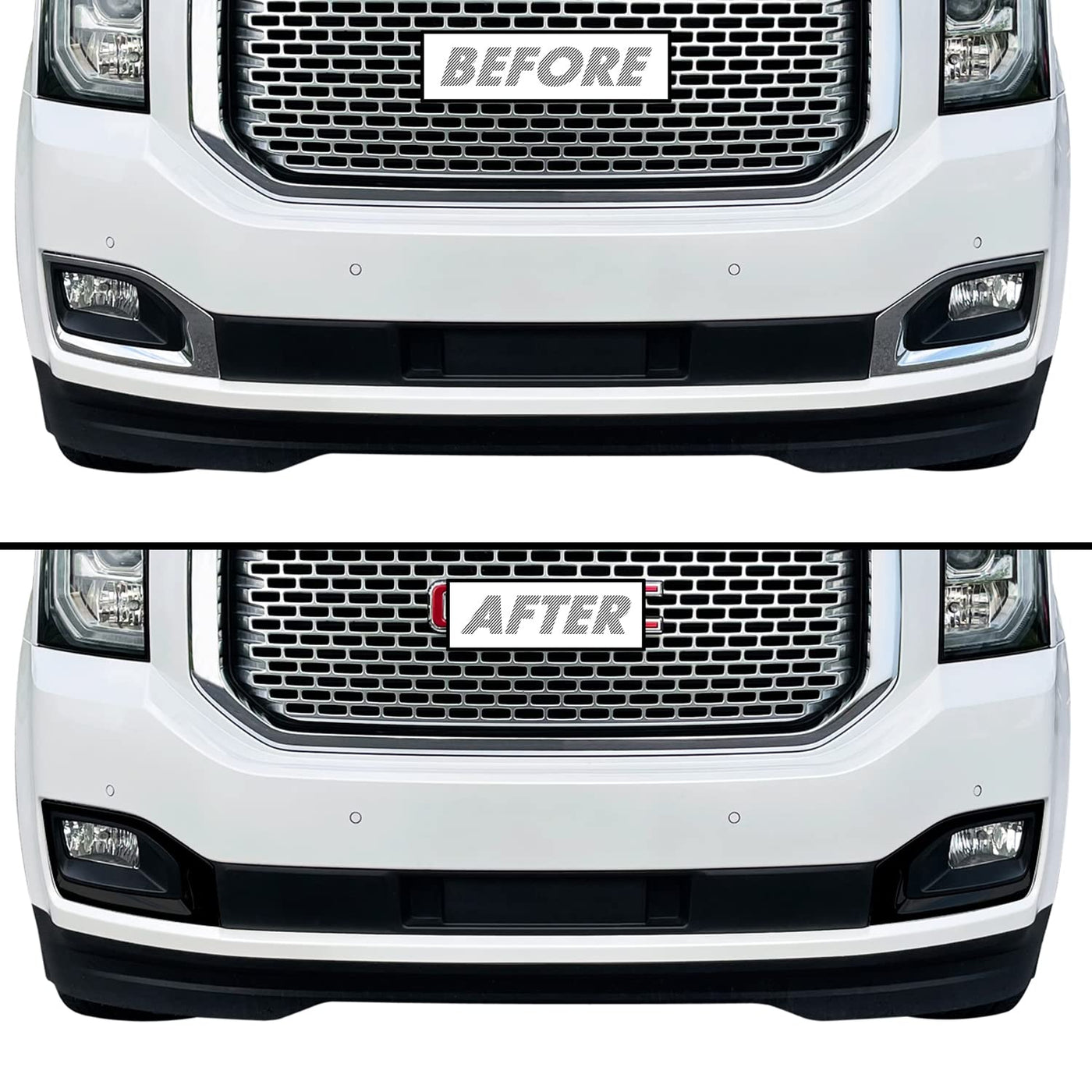 SlickMod Chrome Delete Blackout Vinyl Overlay for 2015-2020 GMC Yukon Front Grill and Fog Light Trim (3. Foglight Trim Only, Glo