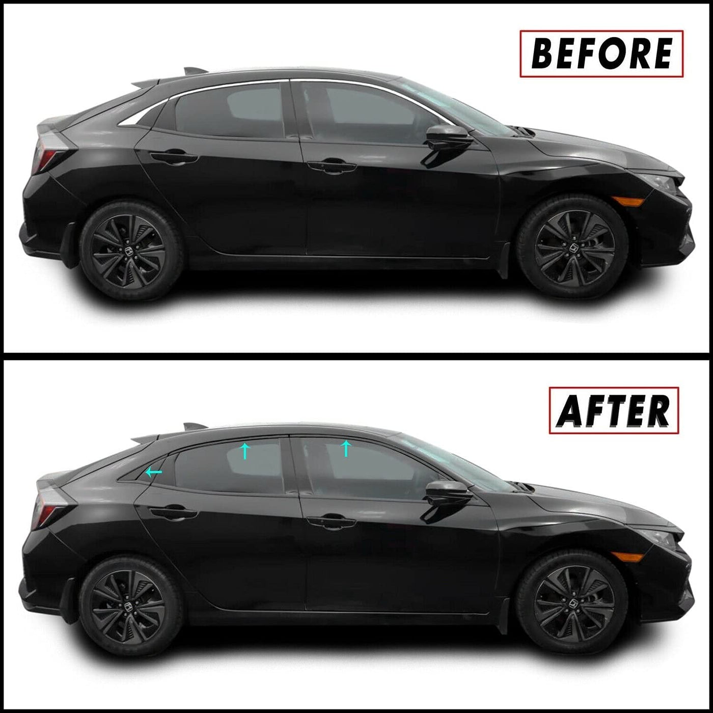 Slickmod Chrome Delete Blackout Vinyl Overlay For 2016-2021 Honda Civic Hatchback Window Trim (Satin Black)