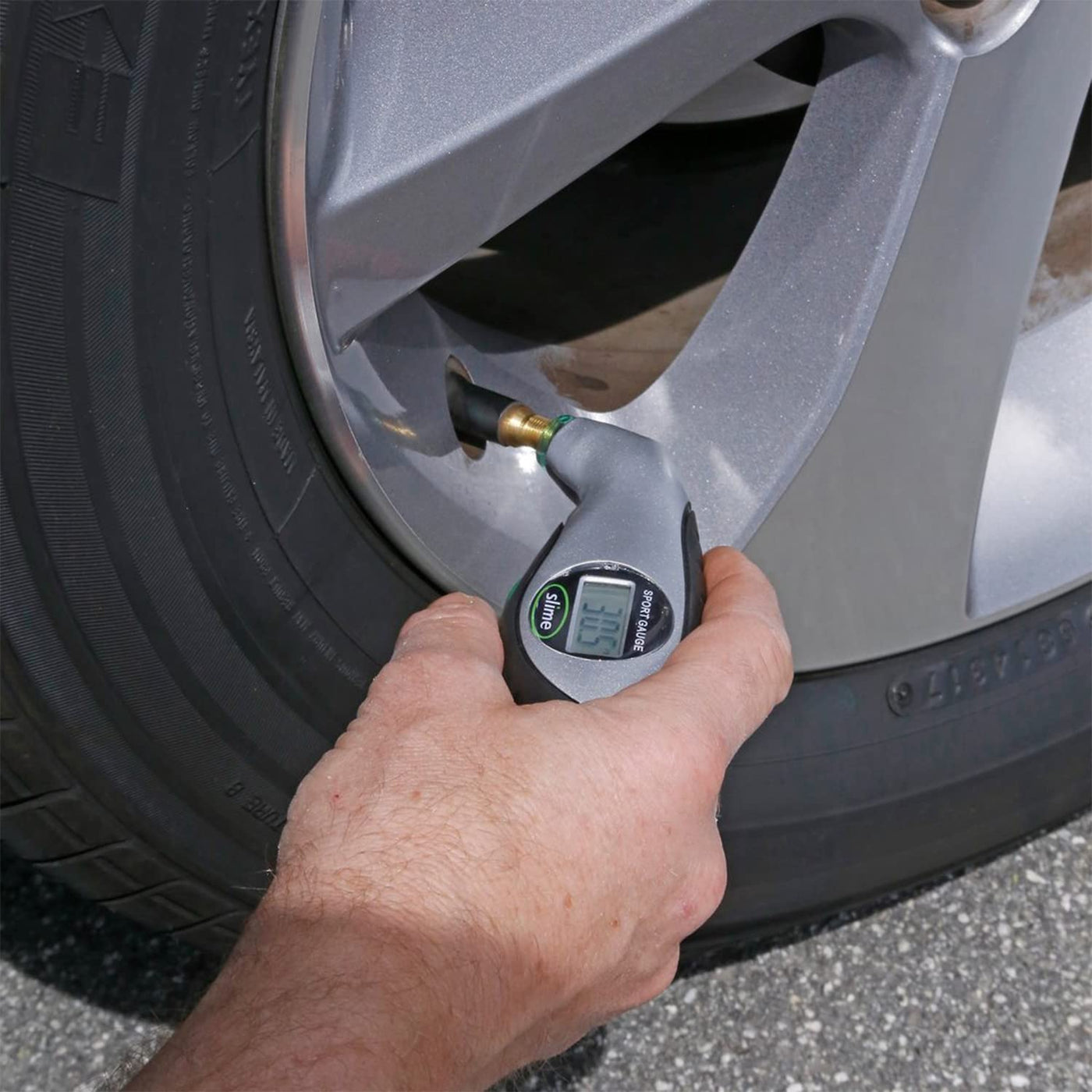 Q: How does the digital display of the Slime Tire Pressure Gauge work?A: The digital display features a bright LCD screen that provides clear and easy-to-read tire pressure readings, ensuring you can check your tire pressure effortlessly.