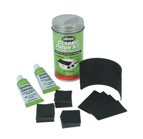 Q: What is included in the Slime 4060-A Classic Rubber Patch Kit?A: The Slime 4060-A Classic Rubber Patch Kit includes 27 pieces, featuring various size patches, 2 tubes of glue, and all items necessary for effective tire repair.