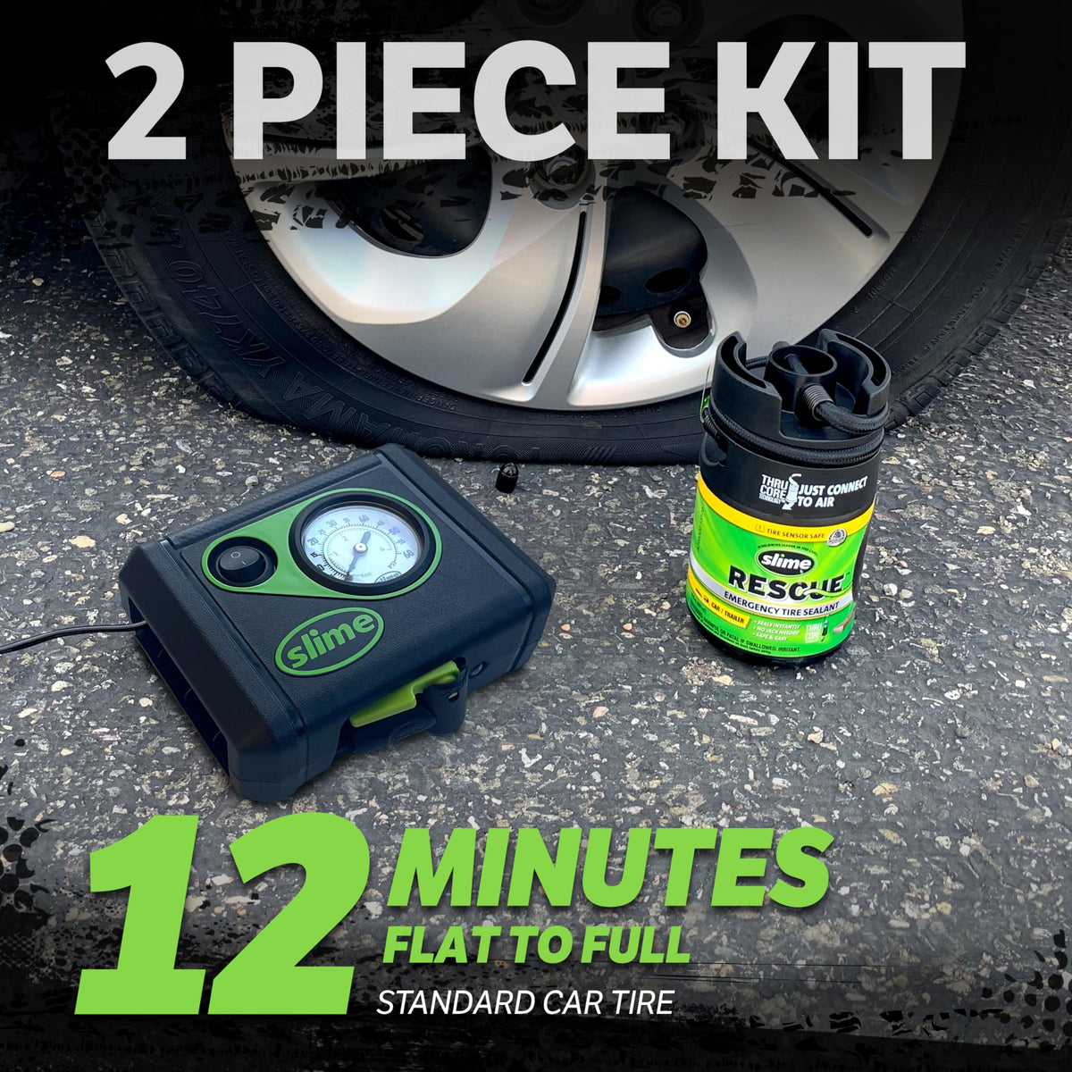Slime 50138 Flat Tire Puncture Repair, Smart Spair Plus, Emergency Kit For Car Tires, Includes Sealant And Tire Inflator Pump, S
